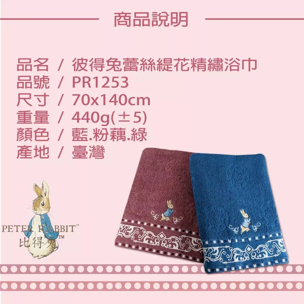 【PETER RIBBIT】彼得兔純棉歐風新貴族蕾絲緹花精繡浴巾PR1253