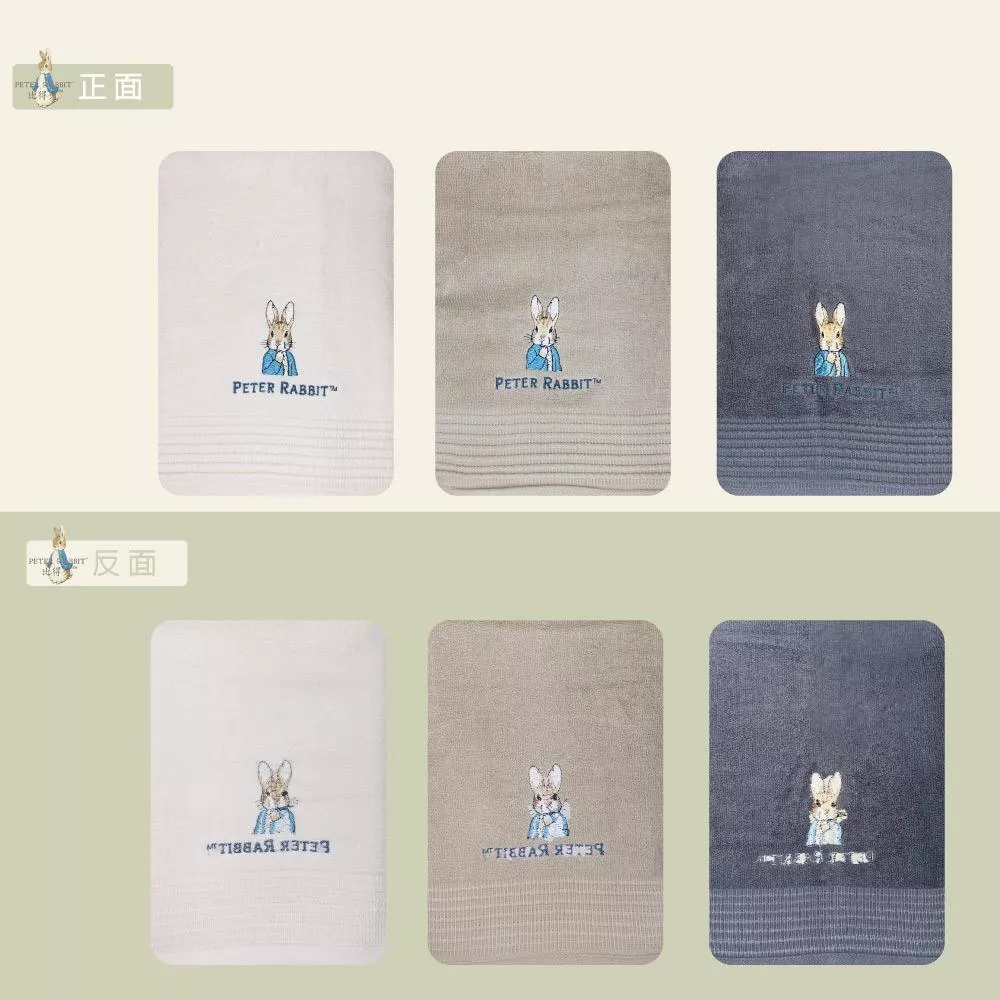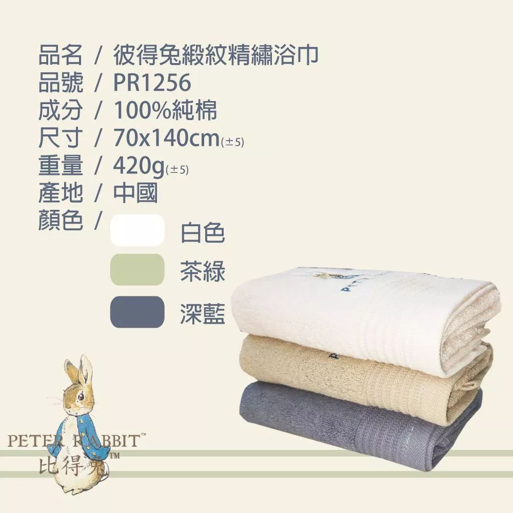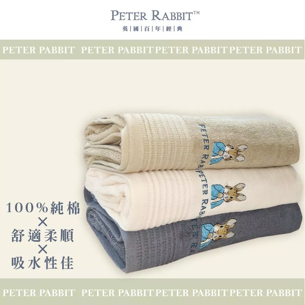 【PETER RABBIT 比得兔】純棉無捻紗緞紋精繡純淨系浴巾PR1256