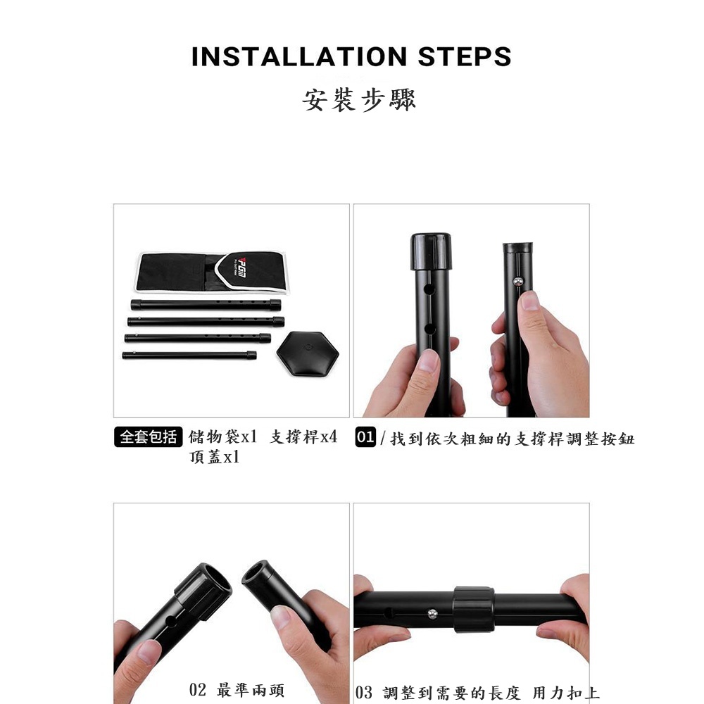 1. 可調節長度:支撐桿共有4節,可依照球包的大小調整長度,確保穩固支撐。