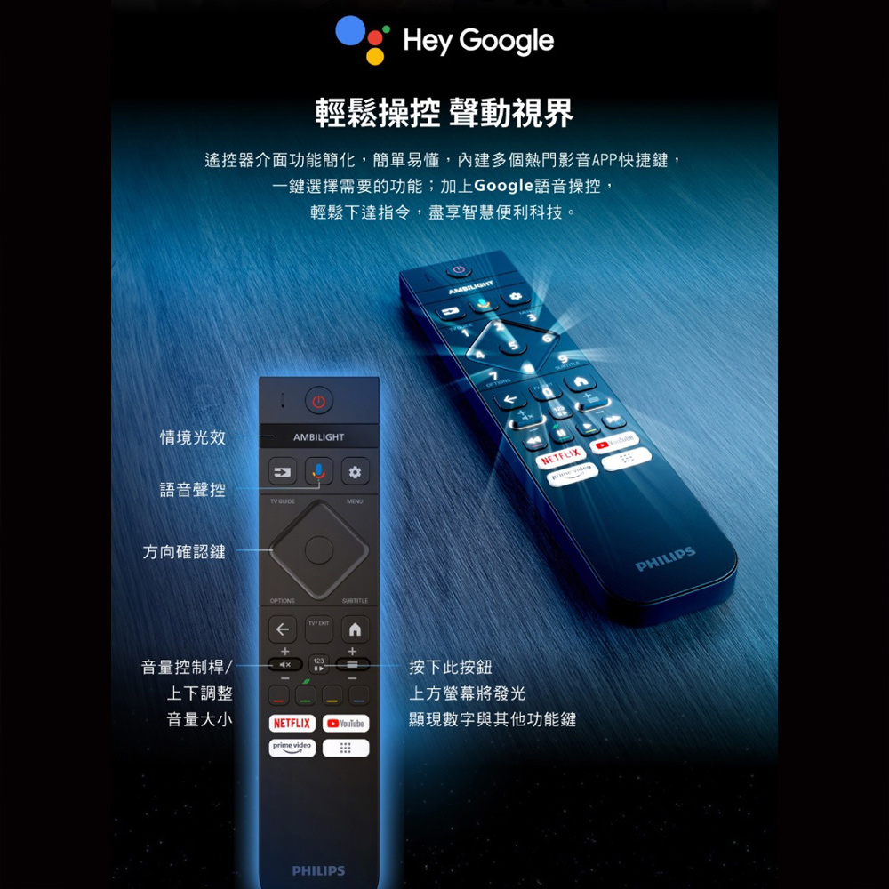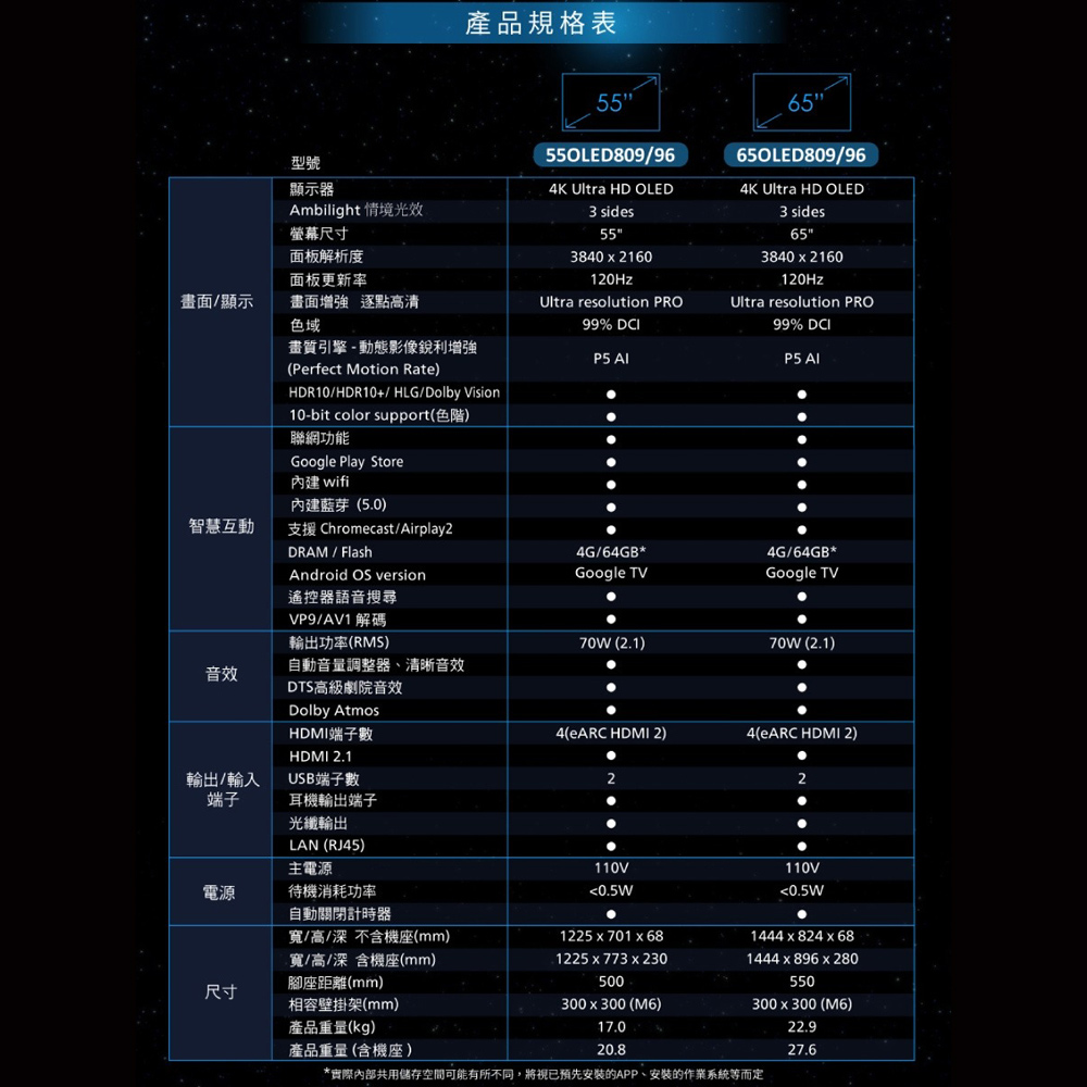 PHILIPS 飛利浦 65吋 OLED 4K AMBILIGHT Google TV智慧聯網液晶顯示器 螢幕 電視 不含視訊盒 65OLED809
