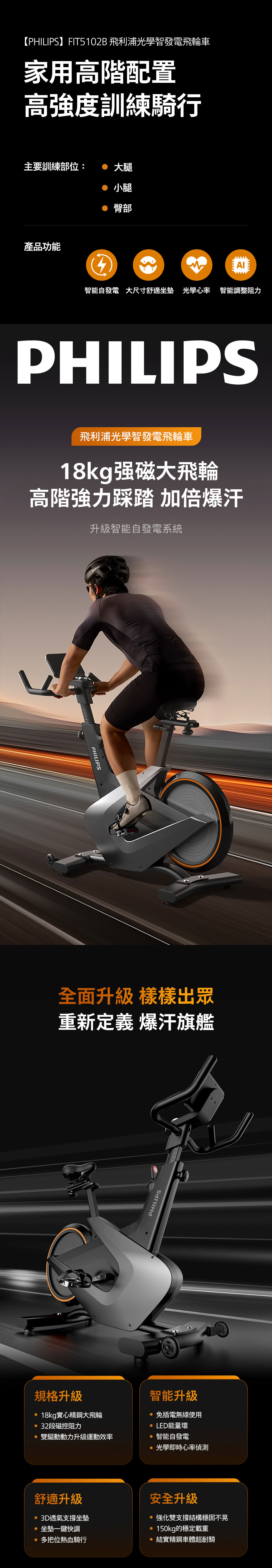 【PHILIPS】FIT5102B 飛利浦光學智發電飛輪車-小黑馬