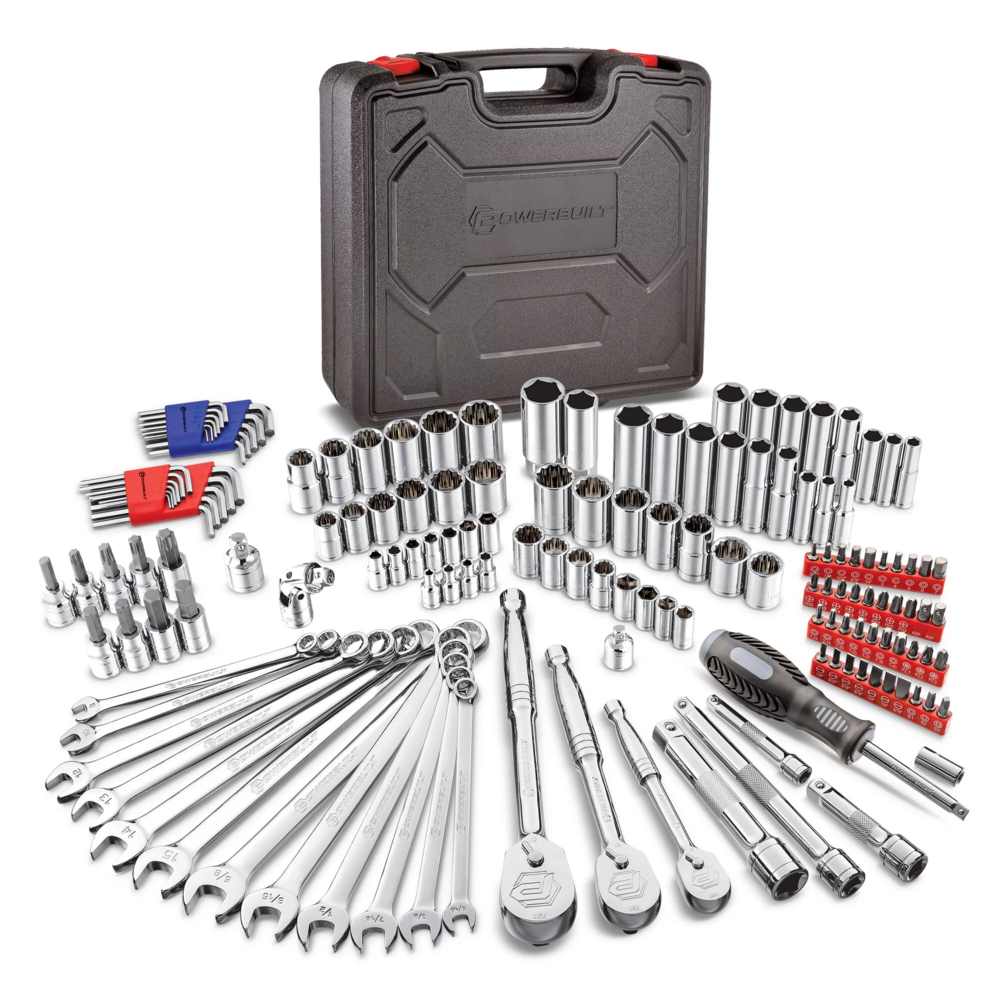 在找尋英制工具組嗎? Powerbuilt152件式公 / 英制汽修工具組提供市場最完整的套筒、板手、棘輪板手的組合,組套包含兩分、三分、四分完整的公制、英制工具。棘輪板手作為套筒工具裡的核心,Powerbuilt152件式工具組裡的兩分、三分、四分棘輪板手採用市場最高等級七二齒內部結構,可以在狹小空間內擁有5度的工作角度,外型採用美式鏡面拋光表面處理以及全封頭部設計,使棘輪板手容易維護,隨時保持最佳狀態。組套內的公 / 英制梅花開口板手採用最高等級鉻釩鋼鍛造製成,以及特殊的加長版規格,可以輕易到達內部狹小空間,並且提供更高的扭力。套筒為鉻釩鋼材質,非市場常見的碳鋼製成,提供更好的硬度、韌性、以及可承受更大扭力,大大提升了耐用度。每顆公制、英制套筒皆採用Powerbuilt專利HV ( High-Visibility Size Marking) 打字技術,將尺寸放大,並且清楚的標示於套筒,在選取或找尋工具時,提供極佳的便利性。除此以外,套筒組內包含了接桿、方桿、套筒轉接頭、萬向接頭、套筒起子、內六角板手、火星塞套筒、起子頭,提供了完整拆卸一台車所需的工具。