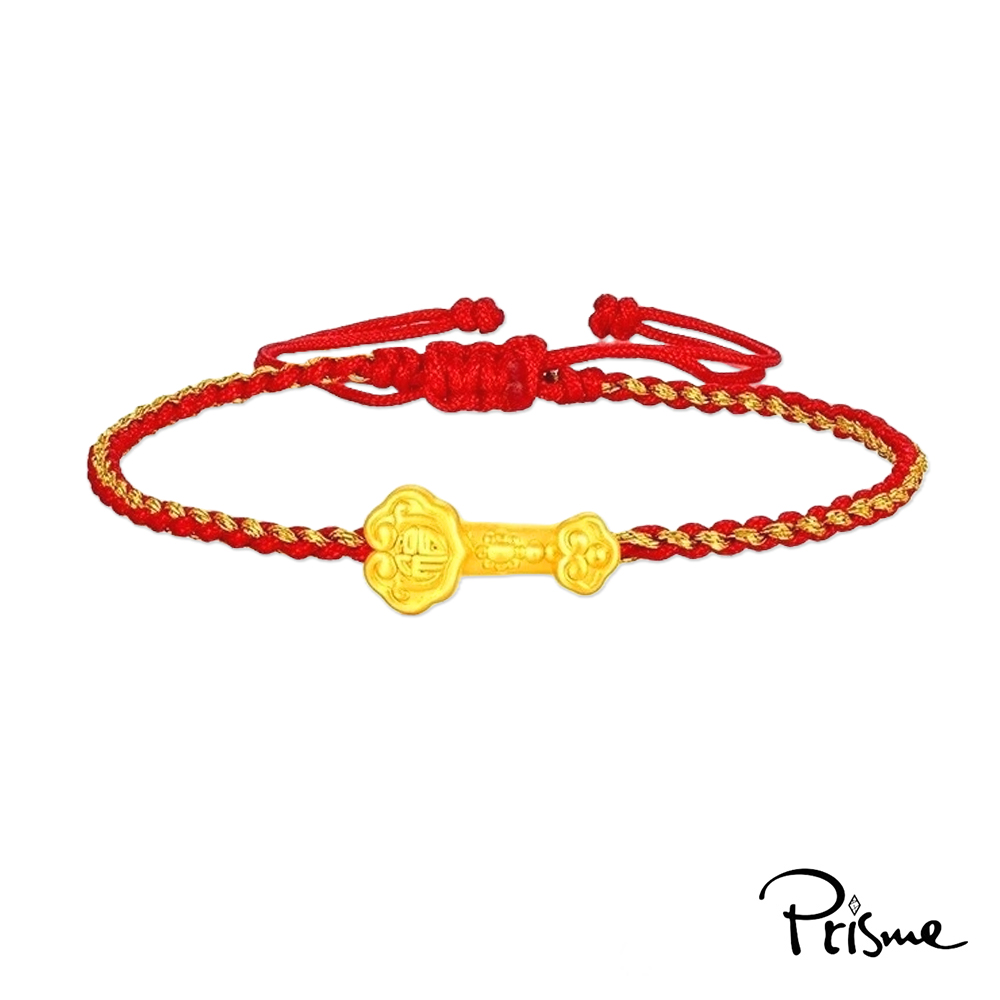 【Prisme Gold】黃金手鍊 純金999福字如意 金線紅編織手繩 (金重:約0.08錢±0.03)