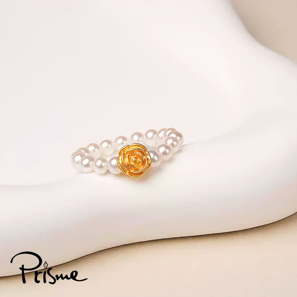 【Prisme Gold】黃金戒指 純金999貝珠珍珠戒指 (金重:約0.02錢±0.01) - 浪漫玫瑰
