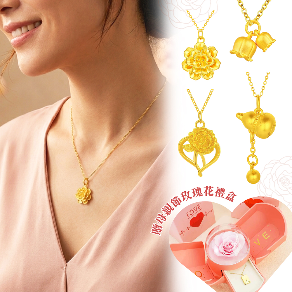 【Prisme Gold】母親節限定 馨情盛放黃金項鍊 任選 (金重約0.13錢±0.03) 贈禮盒