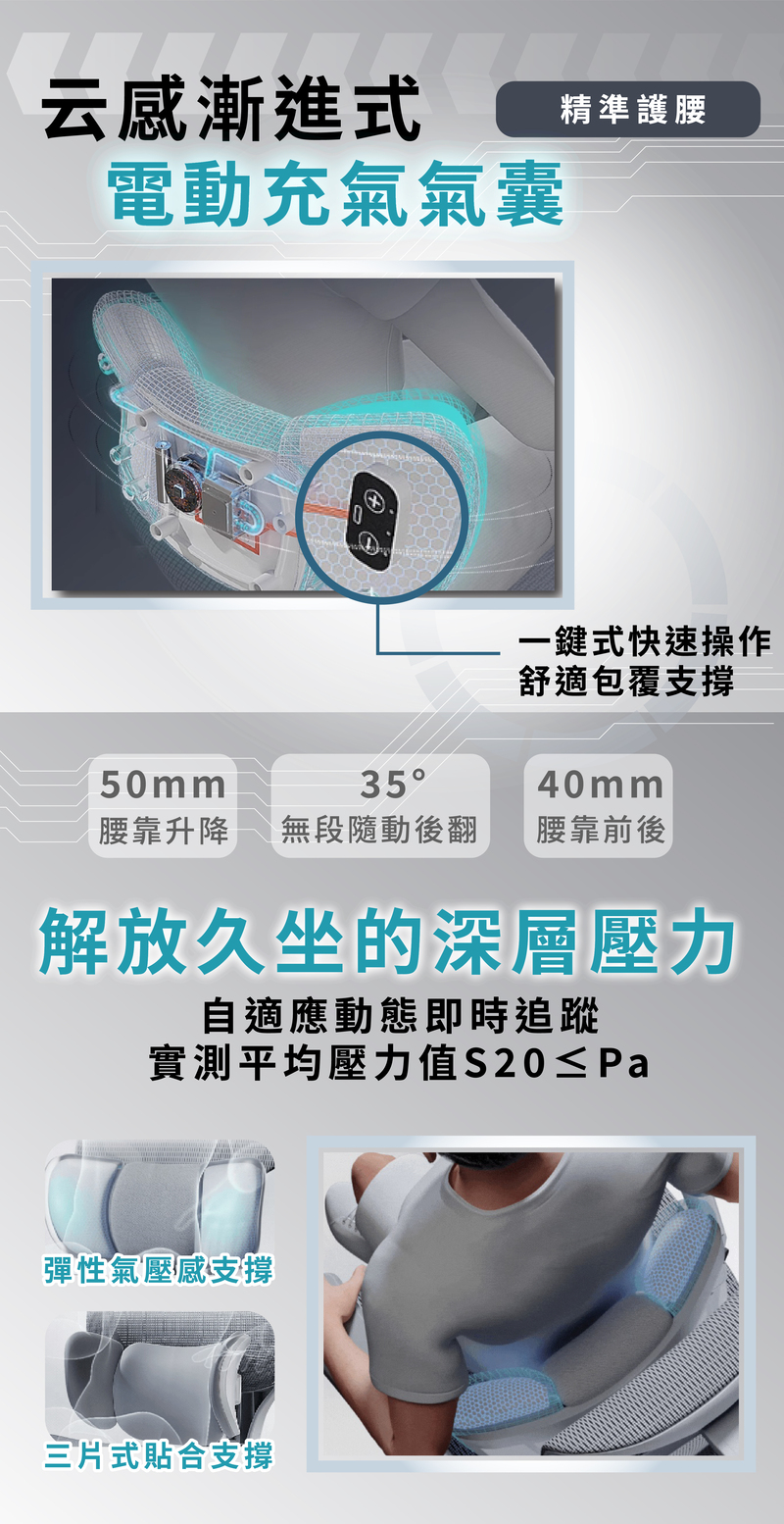 [PROChAIR椅子多]Clouds云舒椅(椅背可調上下 電動充氣腰靠)電腦椅/辦公椅/人體工學椅