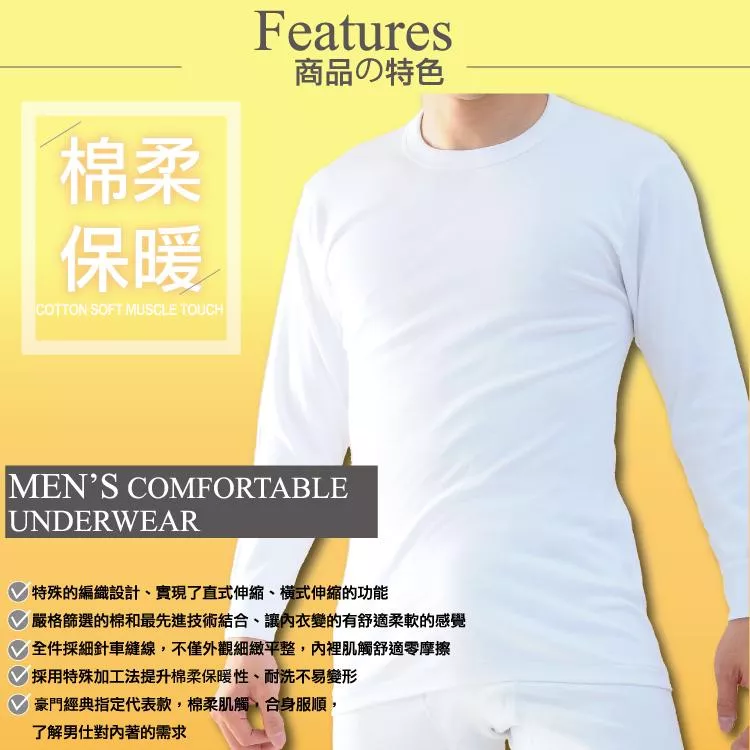 【豪門內衣】暖棉長袖圓領男內衣M750保暖衛生衣