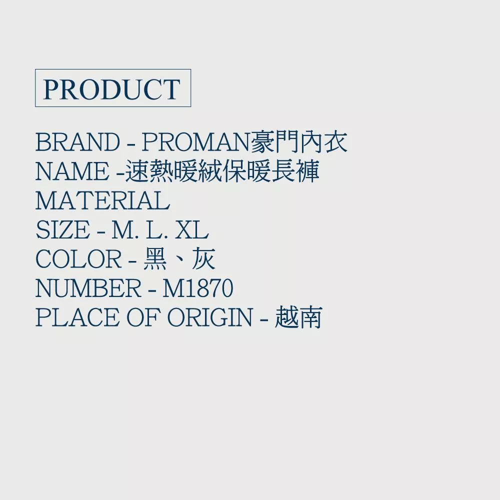 【PROMAN豪門】速熱暖絨男保暖內搭褲M1870