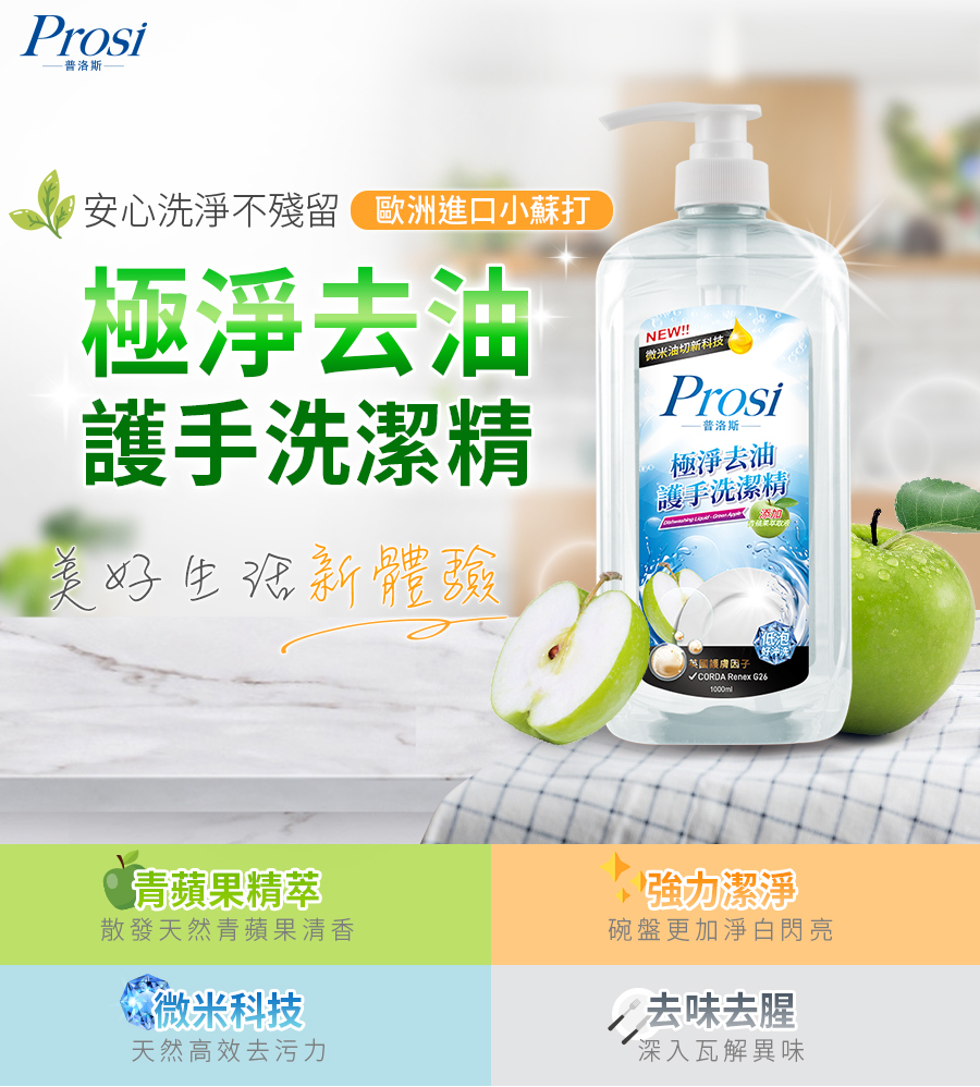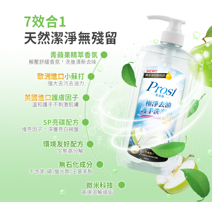 [Prosi普洛斯]極淨去油護手洗潔精1000mlx1入-青蘋果芬芳