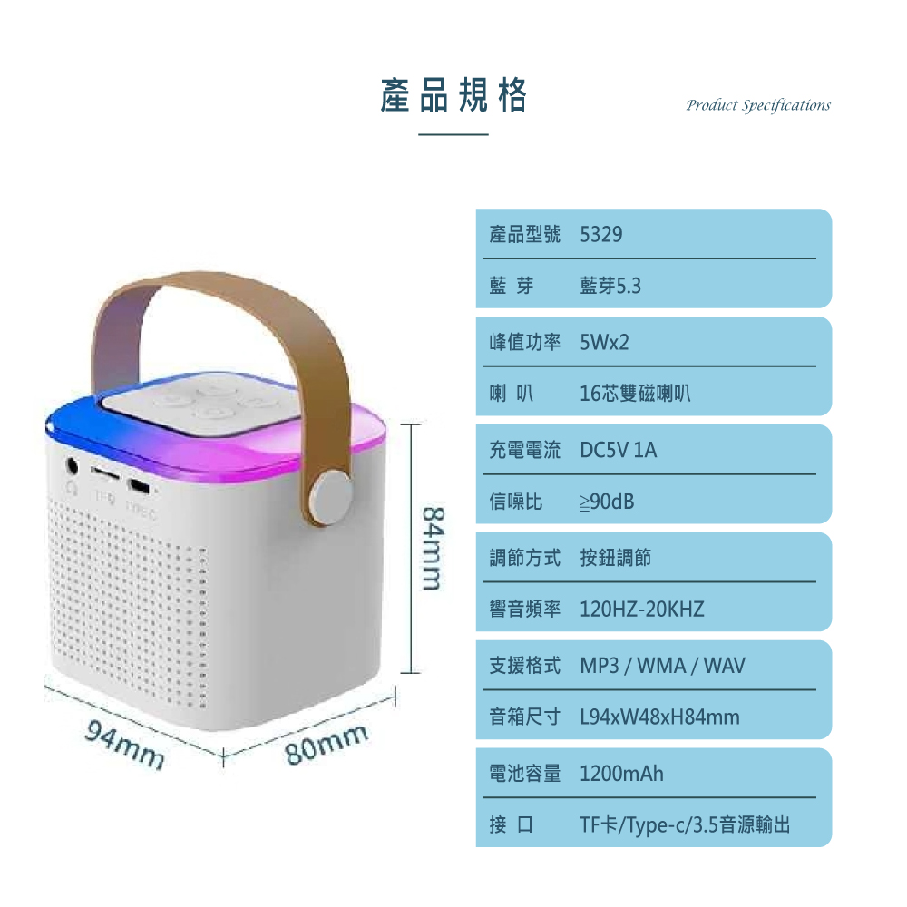 Q&T 藍芽重低喇叭 頻雙喇叭 內建鋰電池 藍牙5.3 炫彩聲光 SY-T5329D