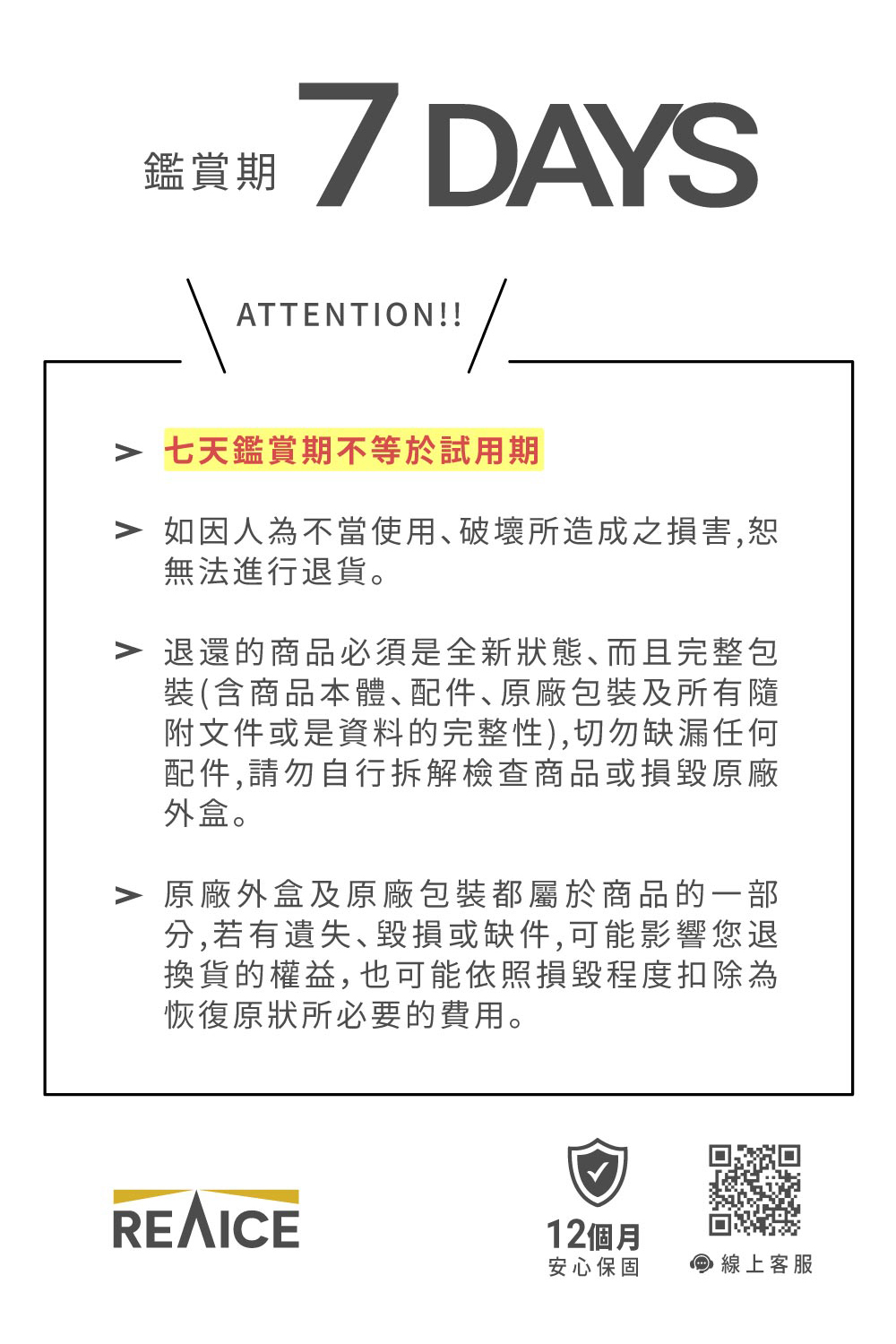 【退/換貨&售後服務】