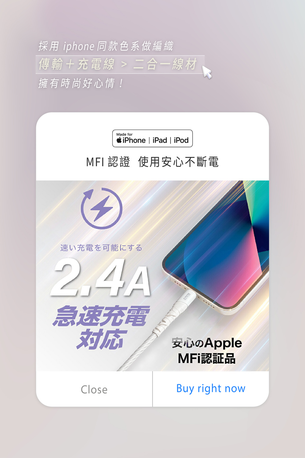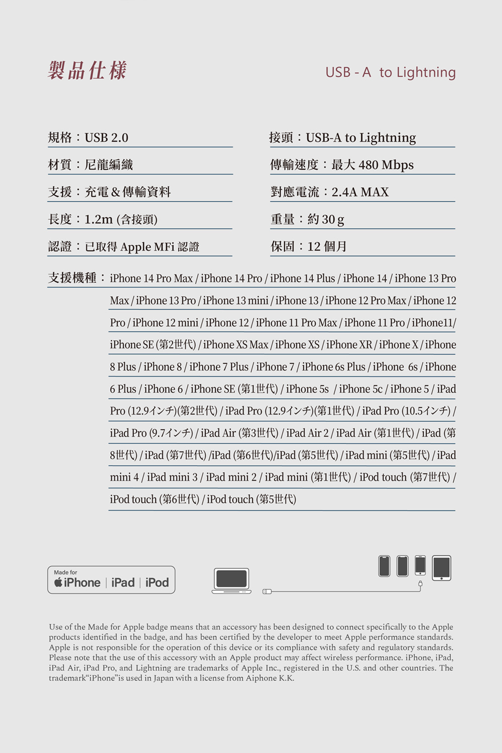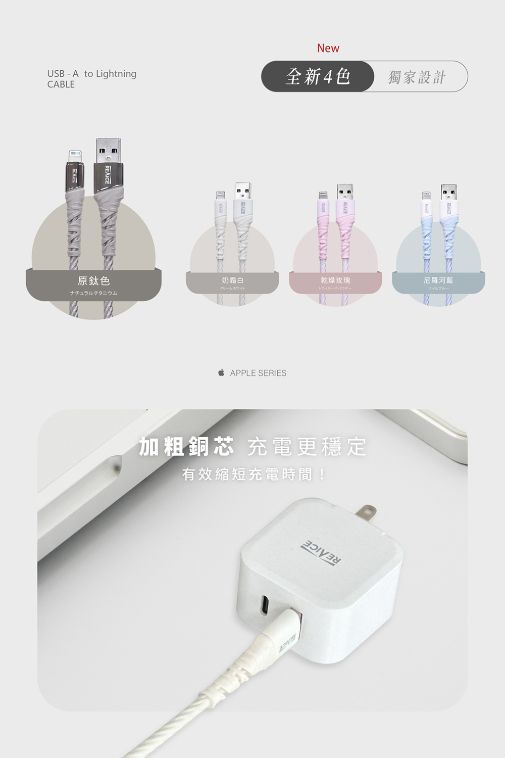 【A+全新福利品】 REAICE USB-A to Lightning 1.2M 耐磨編織充電/傳輸線/多色可選
