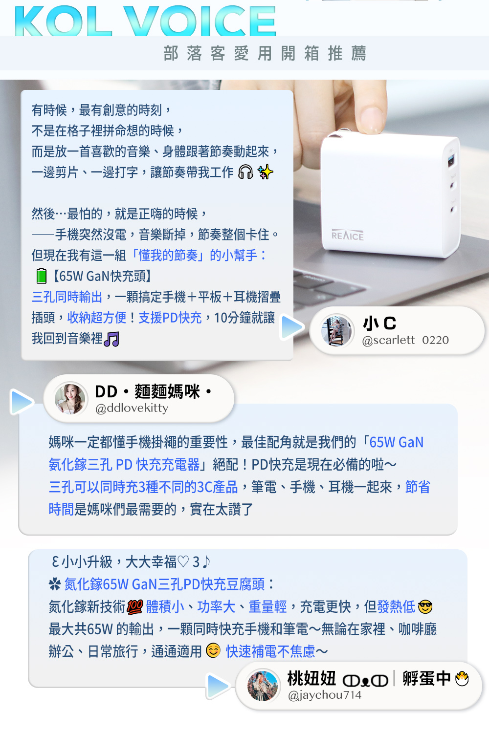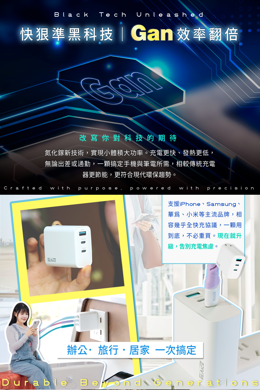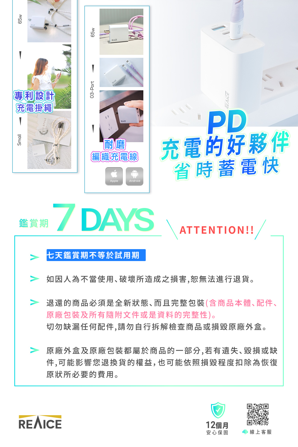 【A+全新福利品】REAICE 65W GaN氮化鎵三孔PD快充充電器 MAC-CCA6501