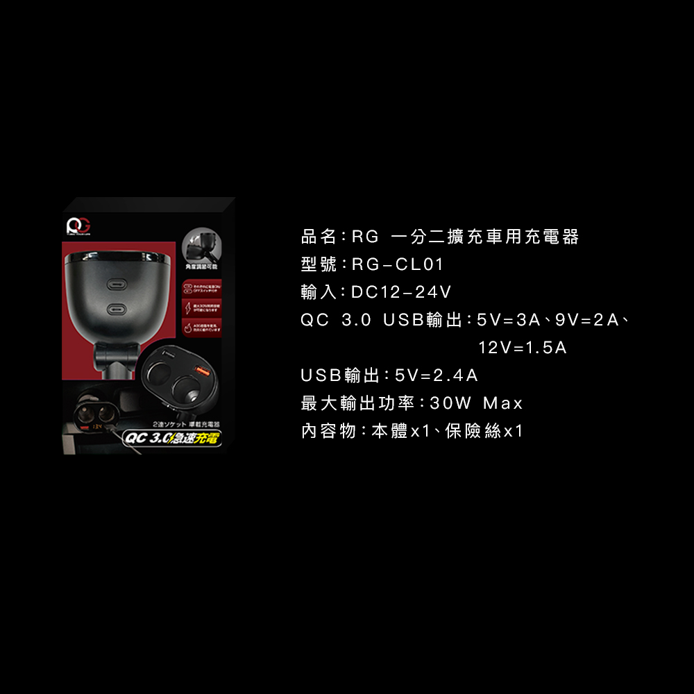 【FUGU】RG 一分二擴充車用充電器