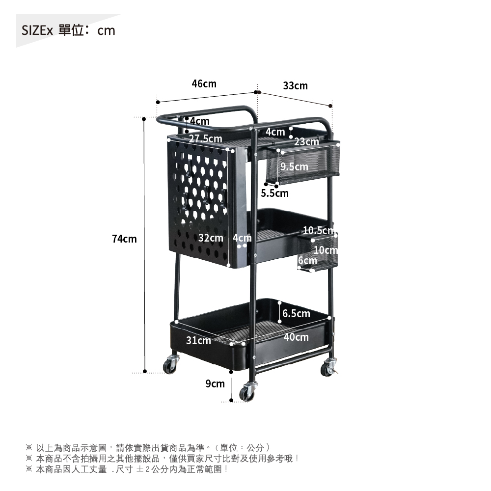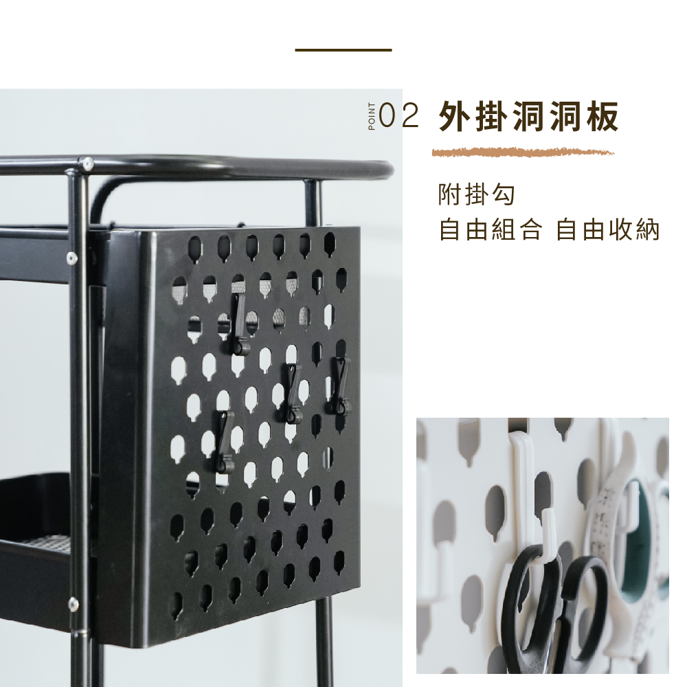 RICHOME三層洞洞板收納推車-白<DIY組裝商品>