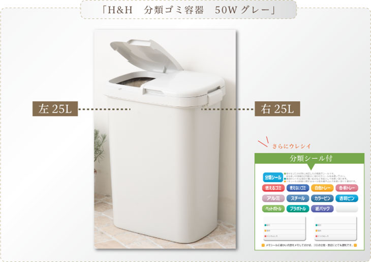 【this-this】日本RISU|H&H系列二分類防水垃圾桶 50L