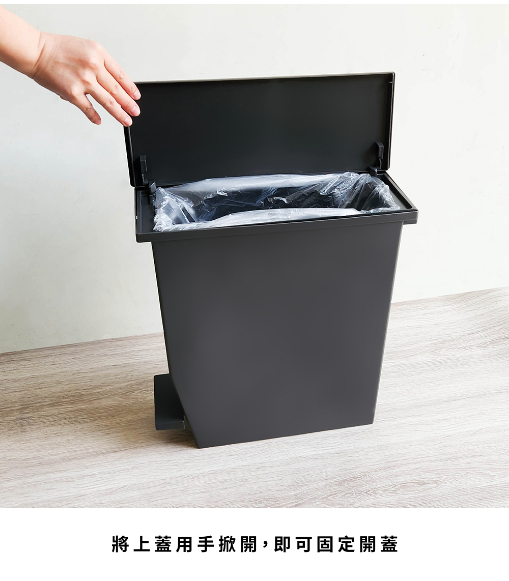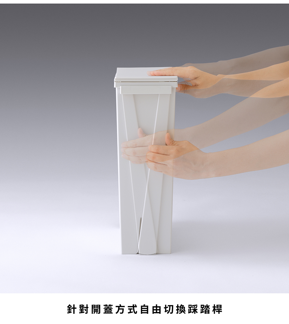 腳踏式的開蓋無需用手即可開合,保持乾淨俐落,可以隨擺放位置改變開蓋方式。