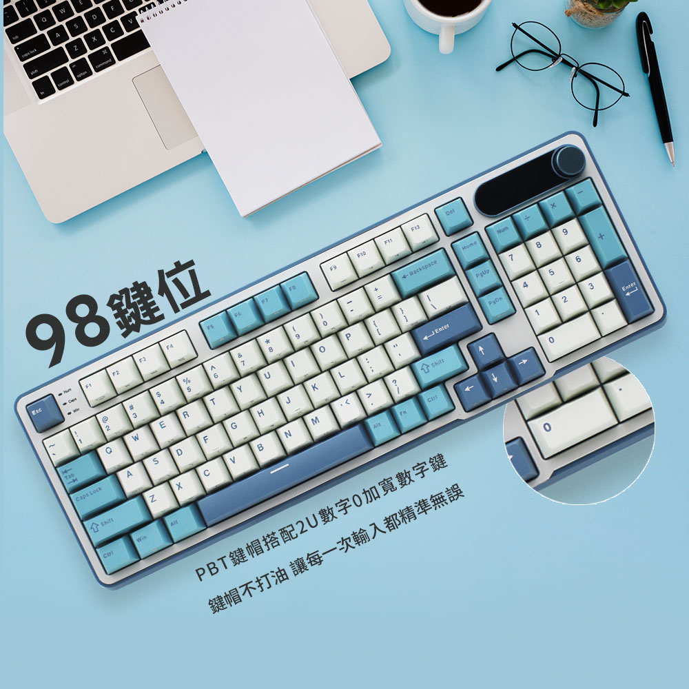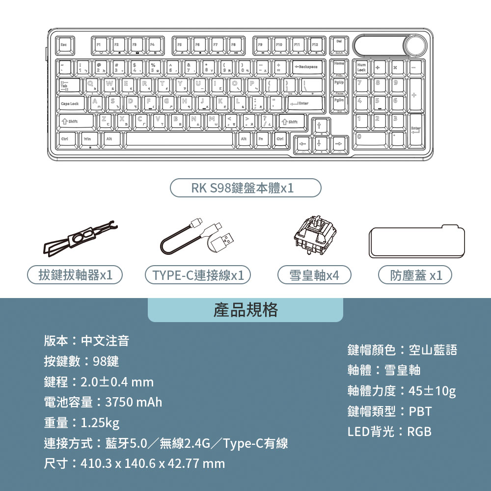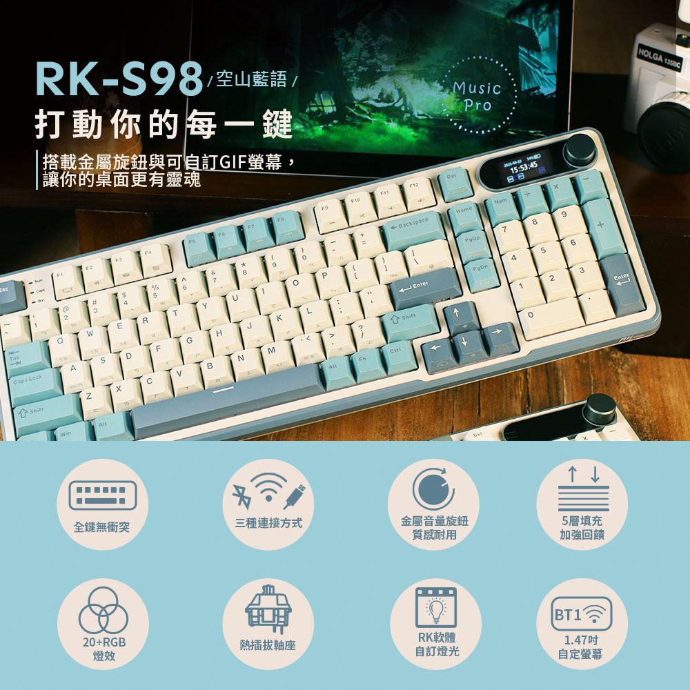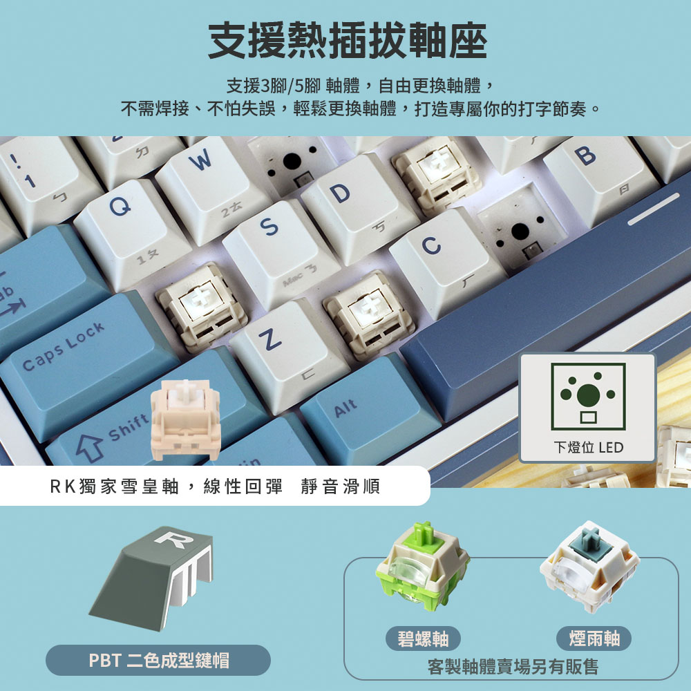 [樂維科技] RK S98 空山藍語配色 三模無線機械鍵盤 TOP結構 雪皇軸 PBT鍵帽 注音