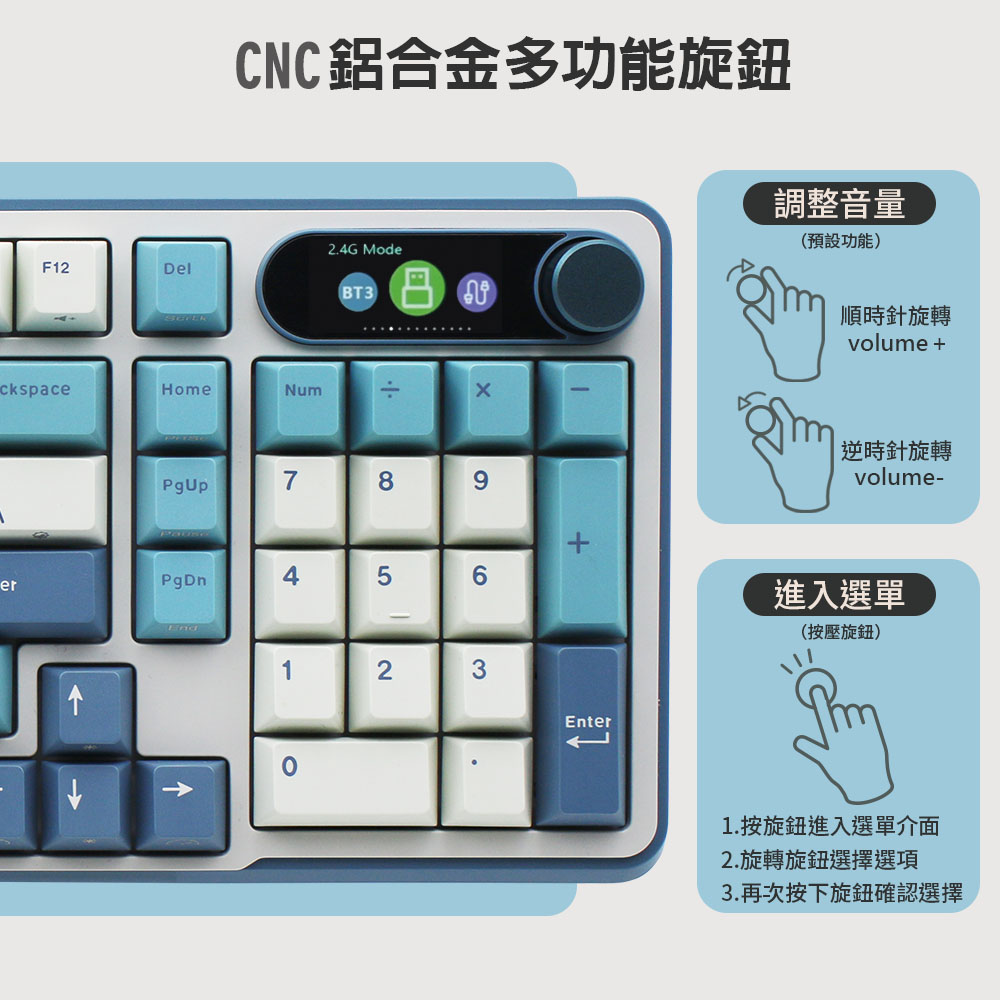 鍵盤支援藍牙、2.4G無線、TYPE-C有線連接,共3種連接方式,還可設定3台藍牙設備快速切換。支援自由切換Windows / Mac 雙系統,滿足各種的工作與跨平台操作需求。無論是出門攜帶,在家遊戲使用,低延遲2.4G、全鍵無衝突功能,滿足多樣化使用場景