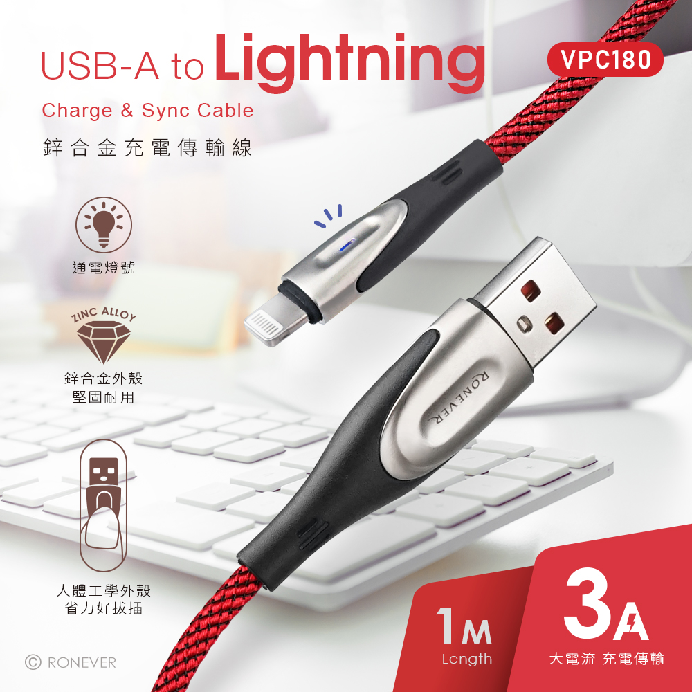[RONEVER] 鋅合金充電傳輸線(Lightning) VPC180