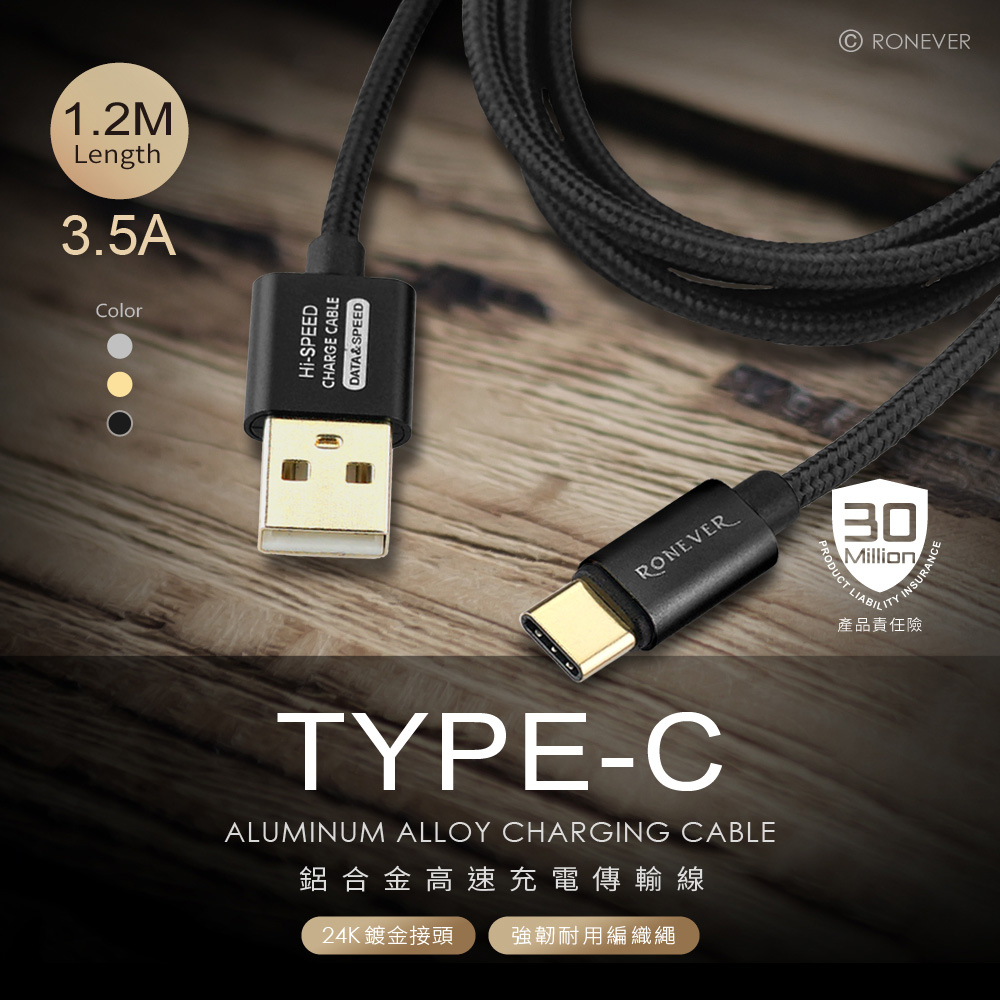 [RONEVER] 鋁合金尼龍編織充電線(TYPE-C) VPC119 灰