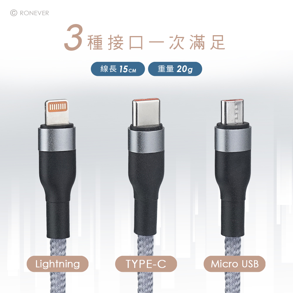 [RONEVER] 多合一吊飾充電線 VPC191 太空灰