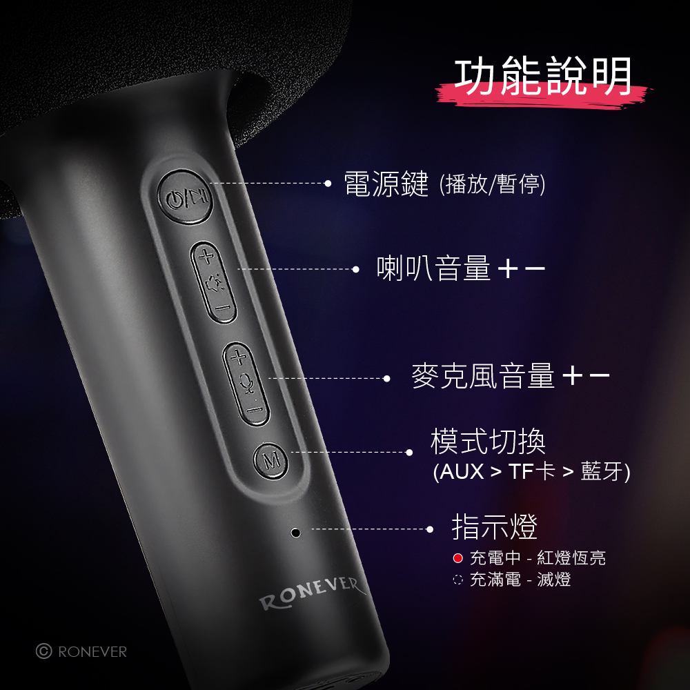 [RONEVER] 藍牙伴唱手持喇叭 MAP177 白