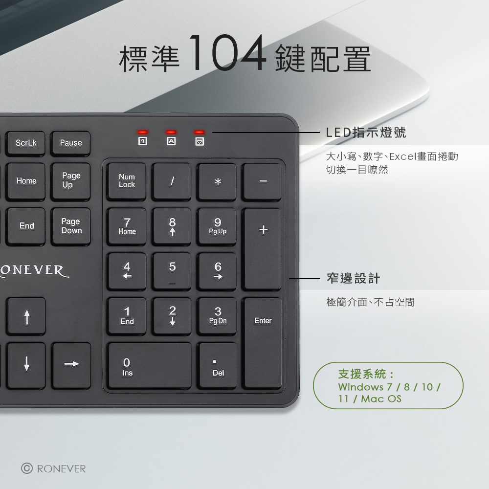 [RONEVER] 無線輕薄靜音鍵盤滑鼠組 KB010