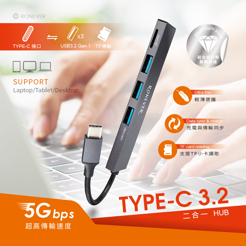 [RONEVER] Type-C 3.2二合一HUB PC024