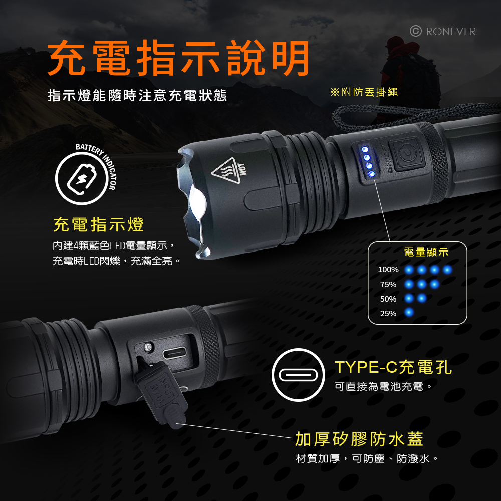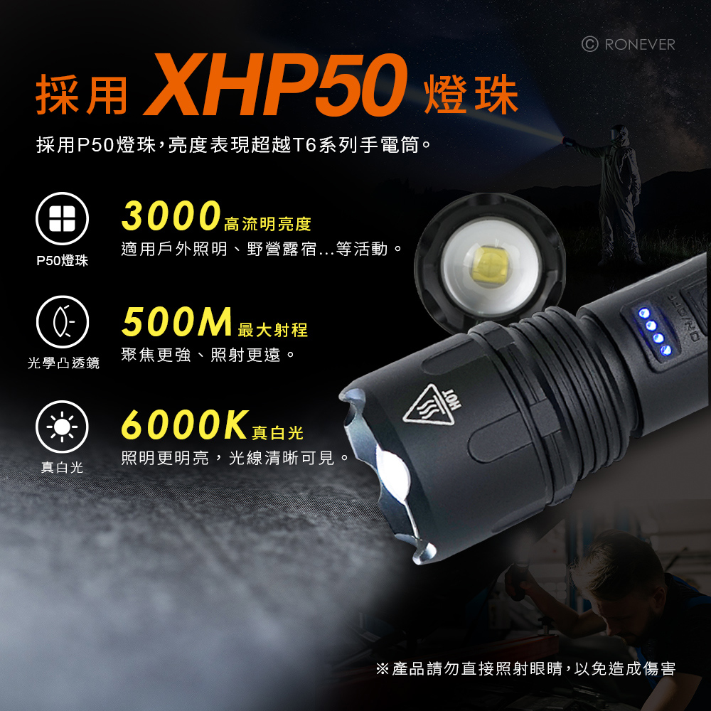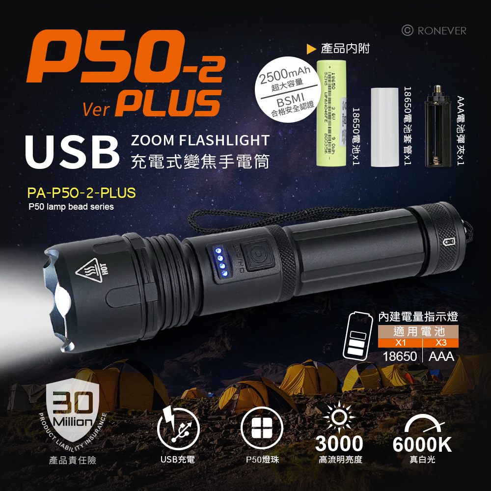 [RONEVER] P50-2 PLUS USB充電式手電筒 PA-P50-2-PLUS