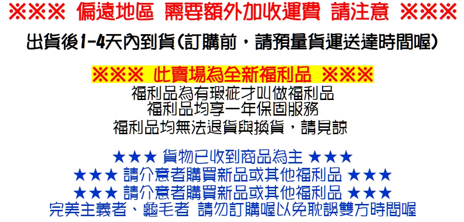 ◆退換貨條件:福利品不接受退貨與換貨。