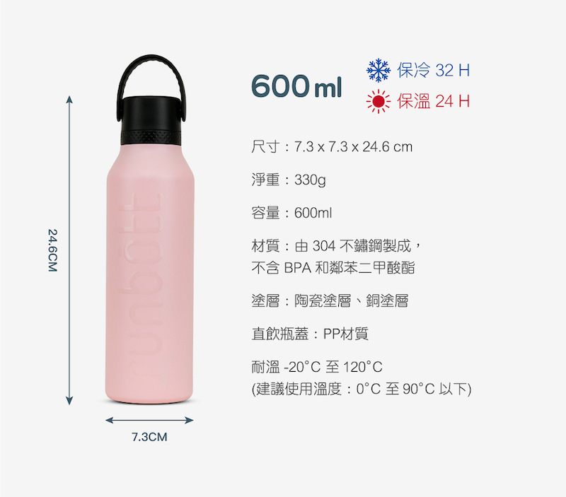 ●不鏽鋼雙層真空技術,有效提升保溫性能,並防止瓶身外層凝結水珠