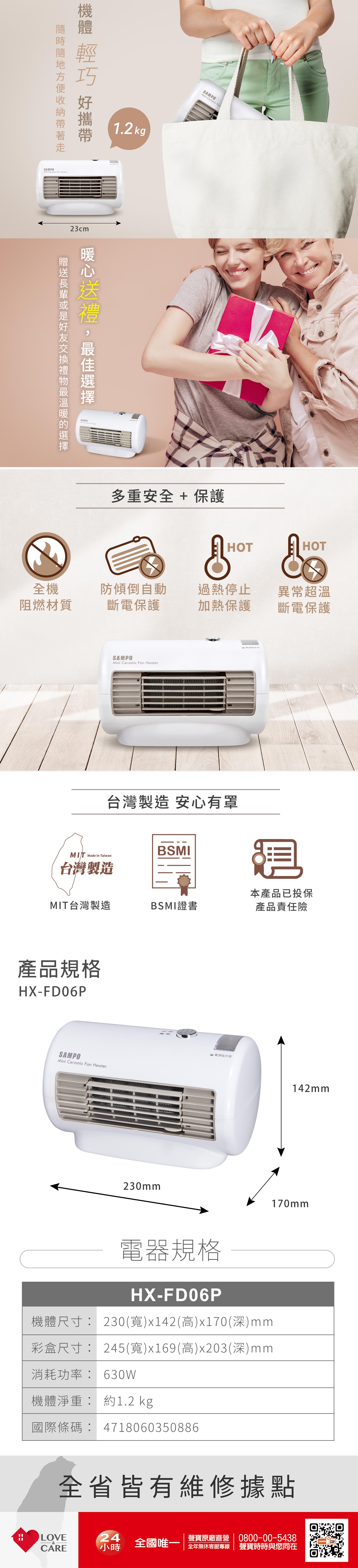 聲寶HX-FD06P陶瓷電暖器