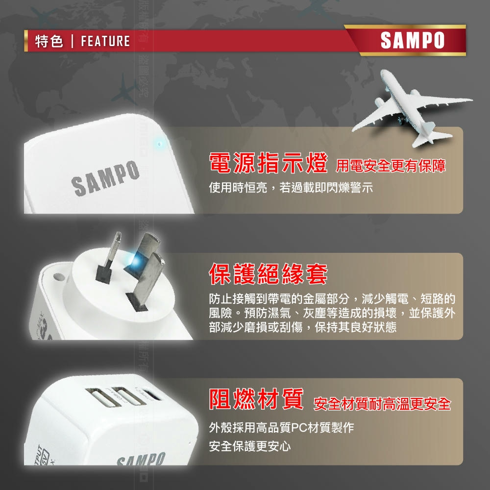 SAMPO 聲寶 EP-MWSA2A1C3 旅行萬國轉接座