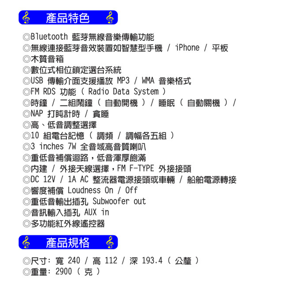 ※無線連接藍芽音效裝置如智慧型手機 / iPhone / 平板