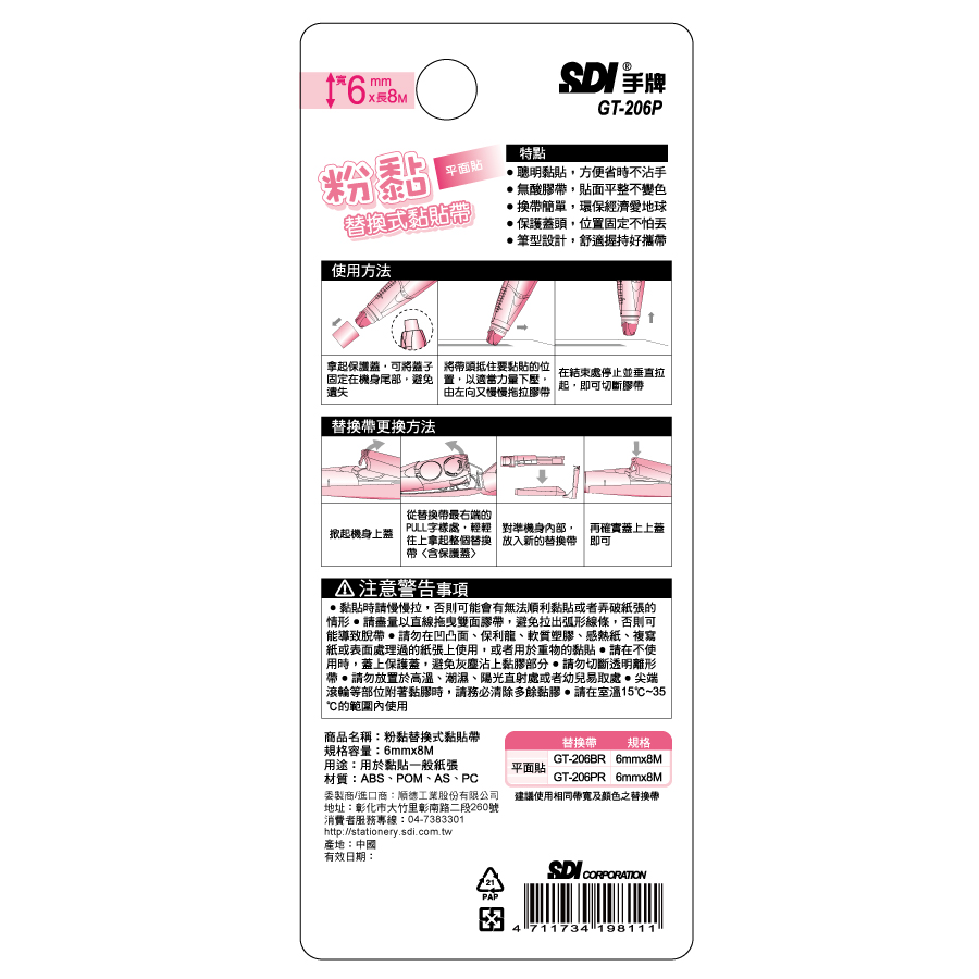 SDI粉黏替換式黏貼帶6mmX8M-粉色