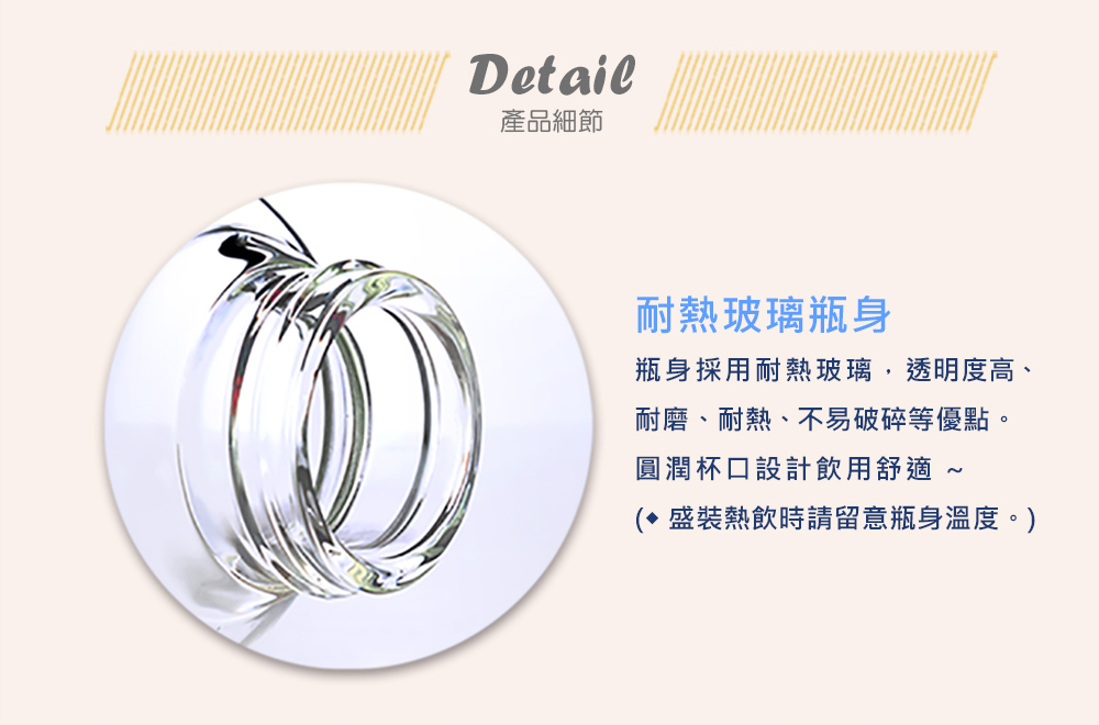 材 質:瓶身-耐熱玻璃 / 上蓋-楠竹、#304不銹鋼、ABS、矽膠止漏圈 / 提袋-聚酯纖維