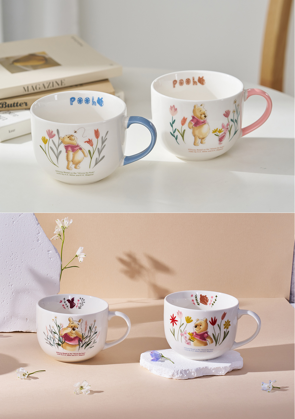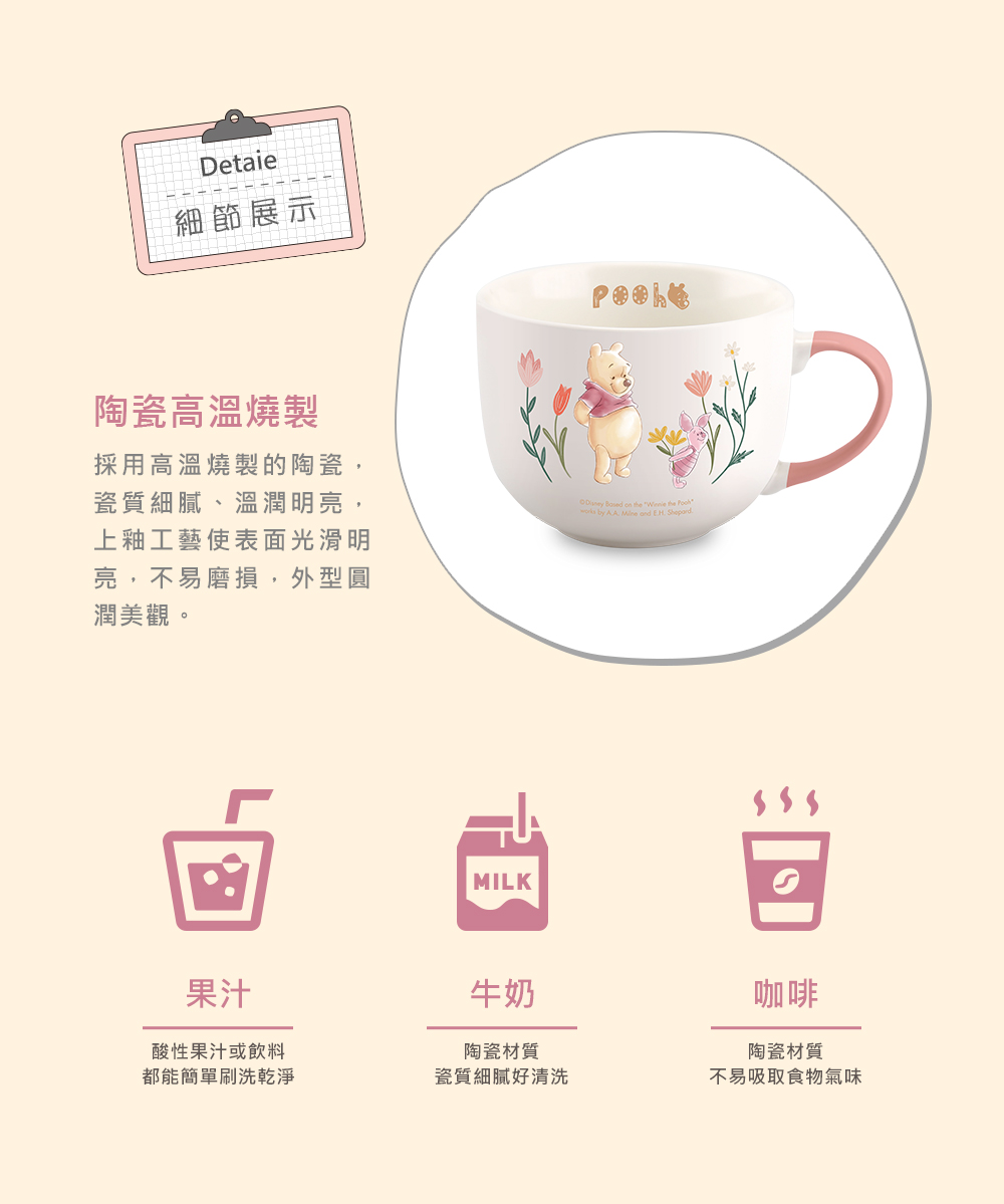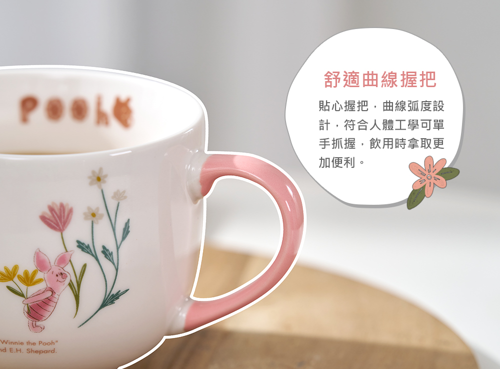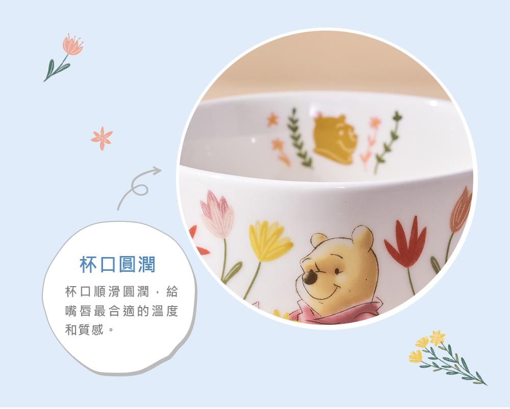 Disney迪士尼 花草維尼大容量陶瓷馬克杯500ml(可當湯杯/彩色禮盒)