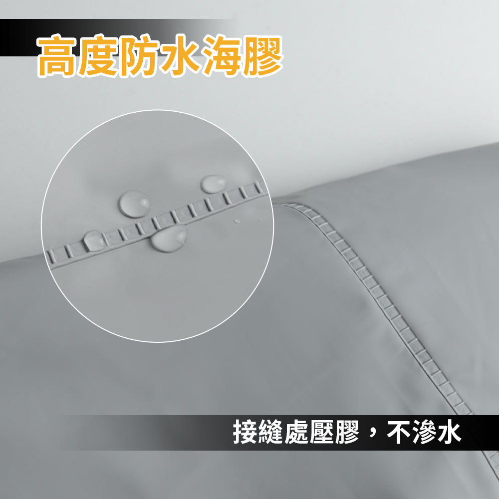 輕量海膠穿著無負擔,胸口雙層防水搭配海膠高抗水特性,雨滴不易滲入。