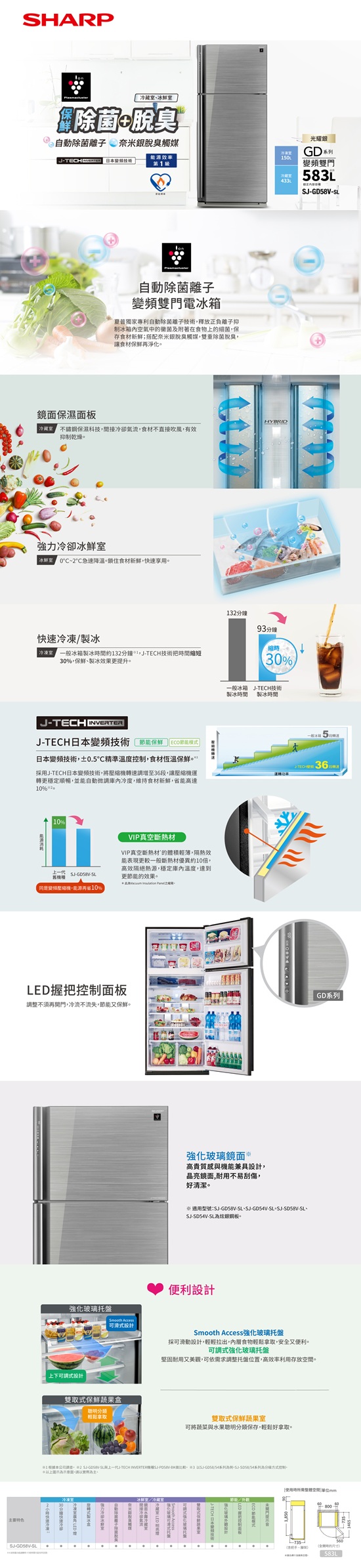 SHARP 夏普 SJ-GD58V-SL 583L自動除菌雙門變頻電冰箱