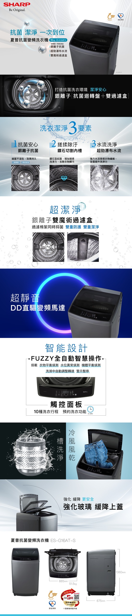 SHARP 夏普 16KG ES-G16AT-S抗菌系列洗衣機