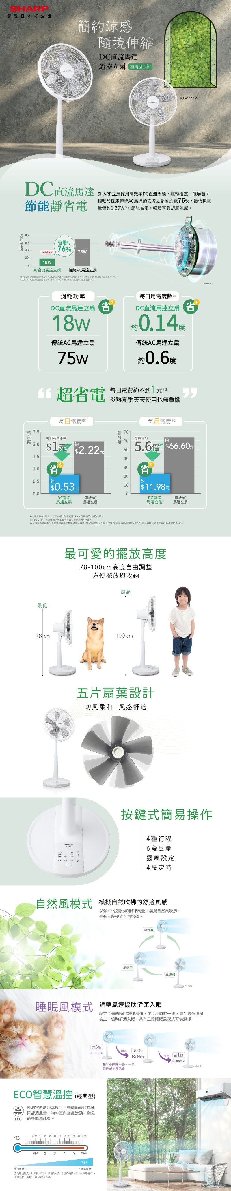 SHARP PJ-V14A-W 14吋DC遙控立扇