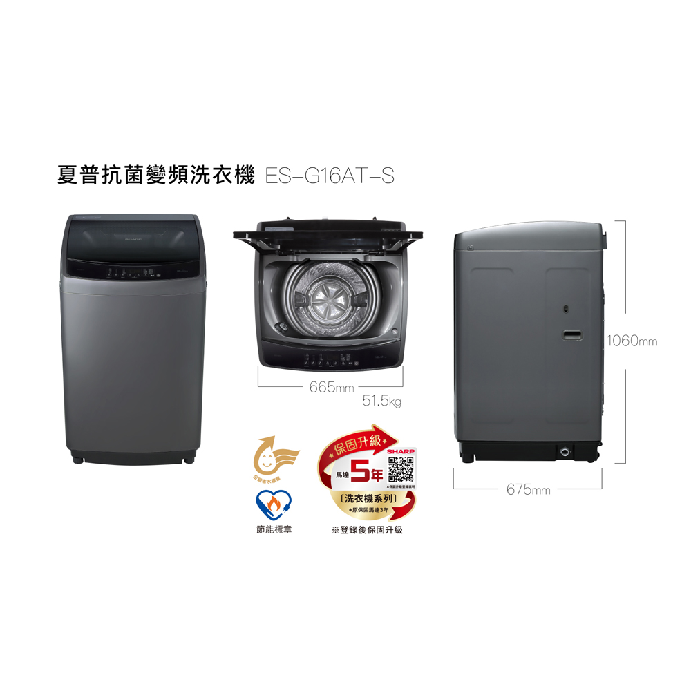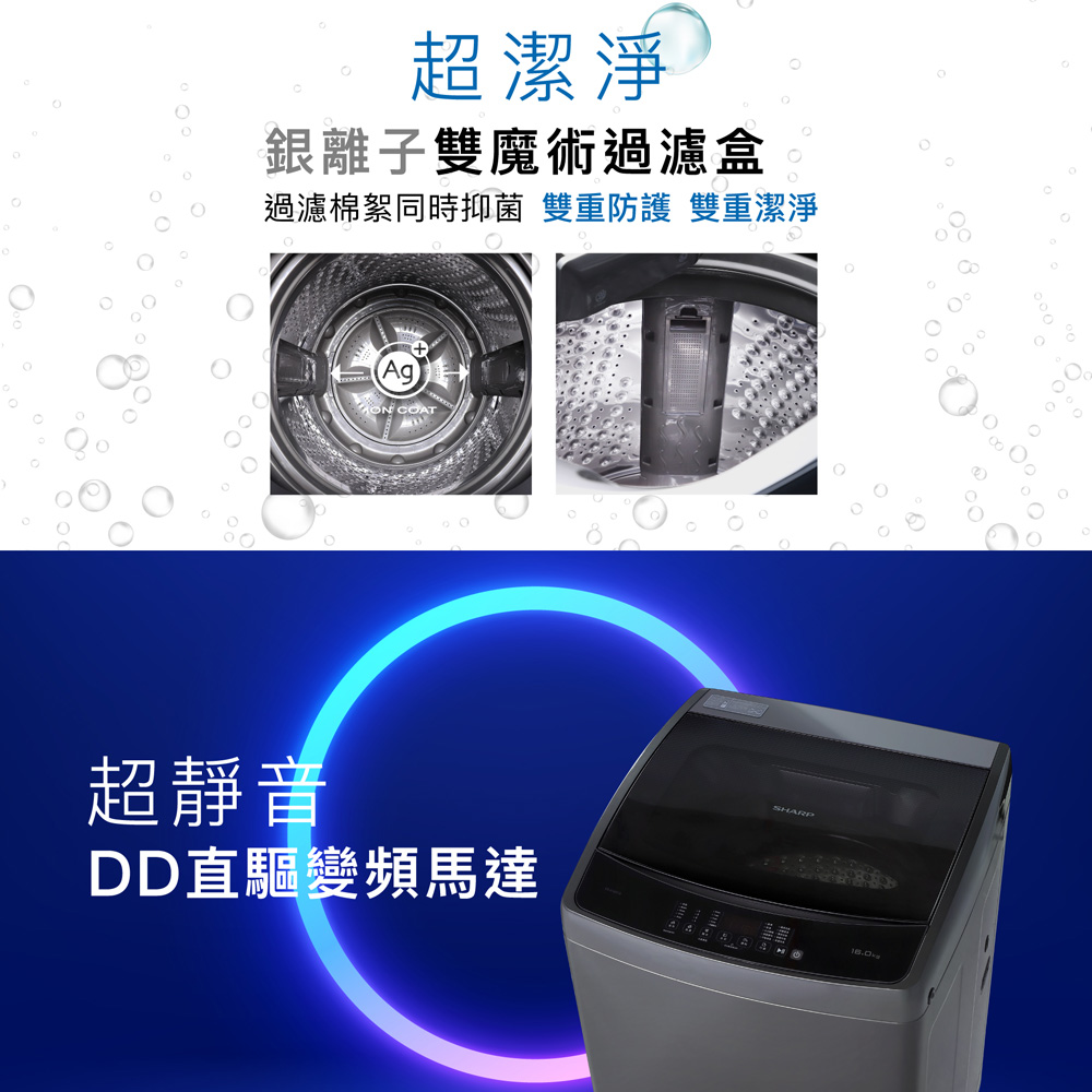 SHARP 夏普 16公斤超靜音DD直驅變頻洗衣機ES-G16AT-S