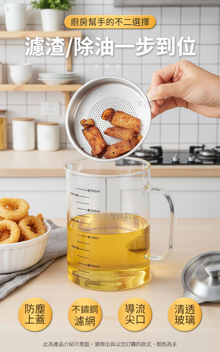 這不僅是我的秘密廚房武器,還是我每天烹飪的利器!💎🍳🔥🔍 嘿,各位美食大師和廚藝愛好者!今天要向大家推薦的是一個真正改變你廚房遊戲的「高硼硅耐熱玻璃濾油壼」!這不僅是我的秘密廚房武器,還是我每天烹飪的利器!💎🍳🌟 精巧設計:壼身採用了簡約風格,不僅美觀,而且易於使用。它真的是廚房的小巧寶藏!💪 高硼硅耐熱玻璃 -壼體採用高硼硅耐熱玻璃製成,不怕高溫,你可以盡情轟炸美食,不必擔心它會被熱油搞壞!🔥🌰 高效濾網:擁有304不鏽鋼濾網,可以輕鬆過濾掉食物殘渣,只留下純淨的油,無需再浪費油料。這樣不僅省錢,還環保!💫 無油煮食,健康生活!💫 濾油壼讓你在烹飪中更放心,不再擔心多餘的油脂。讓你的美味料理更美味、更健康!🏡🌿🌊 大容量 - 這個濾油壼的容量相當大,可以應對不同場合的烹飪需求,無論是炸薯條還是炸雞翅剩下的油脂,都能應付自如。🍟🍗🚀 易清潔 - 清洗這個濾油壼簡直超級容易,可以放入洗碗機,節省你寶貴的時間和精力!🧽它不僅僅是廚房工具,也是能幫助你掌握更多烹飪技巧的器具。不論你是專業廚師還是熱愛烹飪的人,都絕對值得入手。現在就讓它成為你烹飪的得力幫手,一起掌握美食的魔法吧!🍽️🔮#美食大師 #濾油壼 #耐熱 #美食饗宴 #廚藝愛好者注意事項:1.請勿重摔或高處掉落,以免商品受損。2.請勿接近高溫或勿近火源處,以免商品受損。3.商品情境圖片僅供參考,實際出貨不含週邊道具及配件。