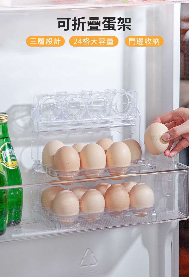 SHCJ 折疊三層保鮮雞蛋架 24顆 保鮮蛋架 立式蛋架 薄型蛋架 冰箱蛋架 折疊蛋架 三層蛋架