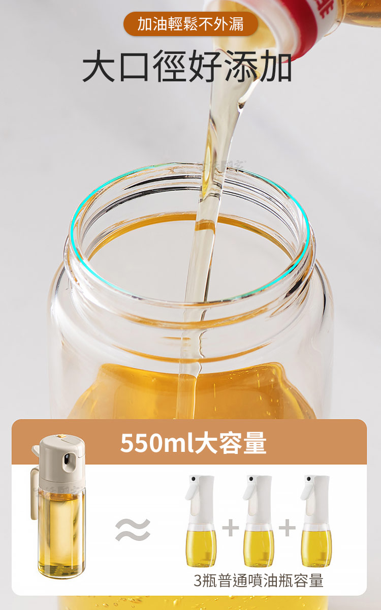 倒噴兩用玻璃油壺550ml|健康飲食從控油開始!🍳 想要料理美味卻又不想油膩負擔?【生活采家 倒噴兩用醬料玻璃油壺550ml】讓你輕鬆控油,一瓶搞定煎、炒、烘、烤、拌,從此開啟健康飲食新習慣!💡✅ 噴倒兩用設計:可一鍵切換噴霧或倒油,炒菜、沙拉、烘烤、氣炸鍋都能精準使用。✅ 550ml大容量:等同三瓶一般油噴壺容量,滿足日常家庭需求。✅ 均勻細霧噴灑:3D廣角霧化,減少油量使用,料理更健康。✅ 透明玻璃:無毛細孔安全衛生,透明瓶身方便查看剩餘油量。✅ 防漏防滴設計:傾倒即開蓋,回正即回流,不浪費每一滴油。👉 使用後你會發現~🥗 做沙拉:輕輕一噴,清爽均勻,避免過油膩口。🍳 煎炒烹飪:精準倒油,火候掌握更到位。🔥 氣炸鍋料理:均勻噴霧,少油也能酥脆可口。🍖 燒烤牛排:噴霧上油,香氣均勻,鎖住肉汁。➡️ 為什麼你需要它?現代人講究健康飲食,卻常難以控制油量。這款油壺,讓你「吃得美味,少油無負擔」。它不僅是料理的美型單品,更是全家健康的守護者。👉 一瓶搞定 煎、炒、烘、烤、拌,從此遠離過量油脂!✨ 別再猶豫!現在就入手,給自己和家人一份輕盈健康!#健康控油 #廚房神器 #噴倒兩用 #玻璃油壺 #少油飲食📣 FAQ (常見問答)Q1:這款油壺可以裝哪些油?A1:可裝橄欖油、葵花籽油、花生油、醬油、醋等液體調味品。Q2:用完油會滴油嗎?A2:不會,瓶蓋自動開合不滴油不掛油,不用擔心會弄髒桌面。Q3:噴霧會不均勻嗎?A3:本產品為3D廣角噴霧設計,霧化均勻,不會有大滴水珠。Q4:容易清洗嗎?A4:瓶口加大設計,可直接伸手或用刷子清潔,簡單方便。Q5:容量會太大嗎?A5:550ml適合家庭日常使用,不必頻繁加油,一瓶即可滿足多場景料理需求。注意事項:1.請勿盛裝高黏度液體(如蜂蜜、糖漿),避免堵塞噴頭。2.使用噴霧模式時,務必將鎖扣調整至正確位置,避免漏油。3.建議定期清洗瓶身與噴頭,保持出油暢通。4.遠離火源與高溫環境,以免瓶身損壞。5.初次使用請先用清水測試噴頭功能,確保噴霧均勻。