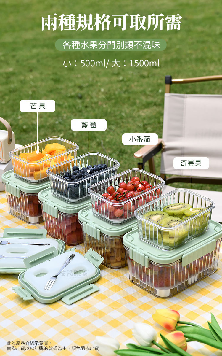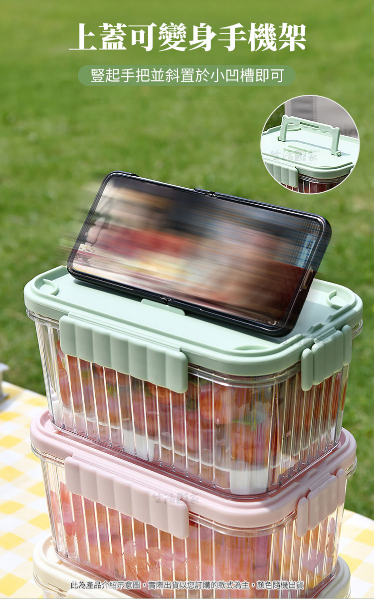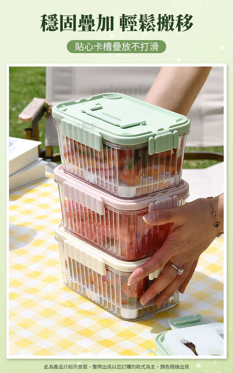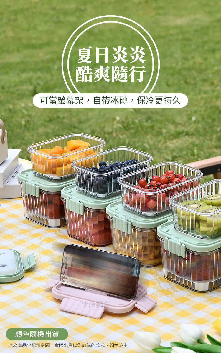 SHCJ 自帶冰磚密封瀝水保鮮盒【550ml】食材低溫保鮮 蔬果保鮮盒 瀝水保鮮盒 手提保鮮盒