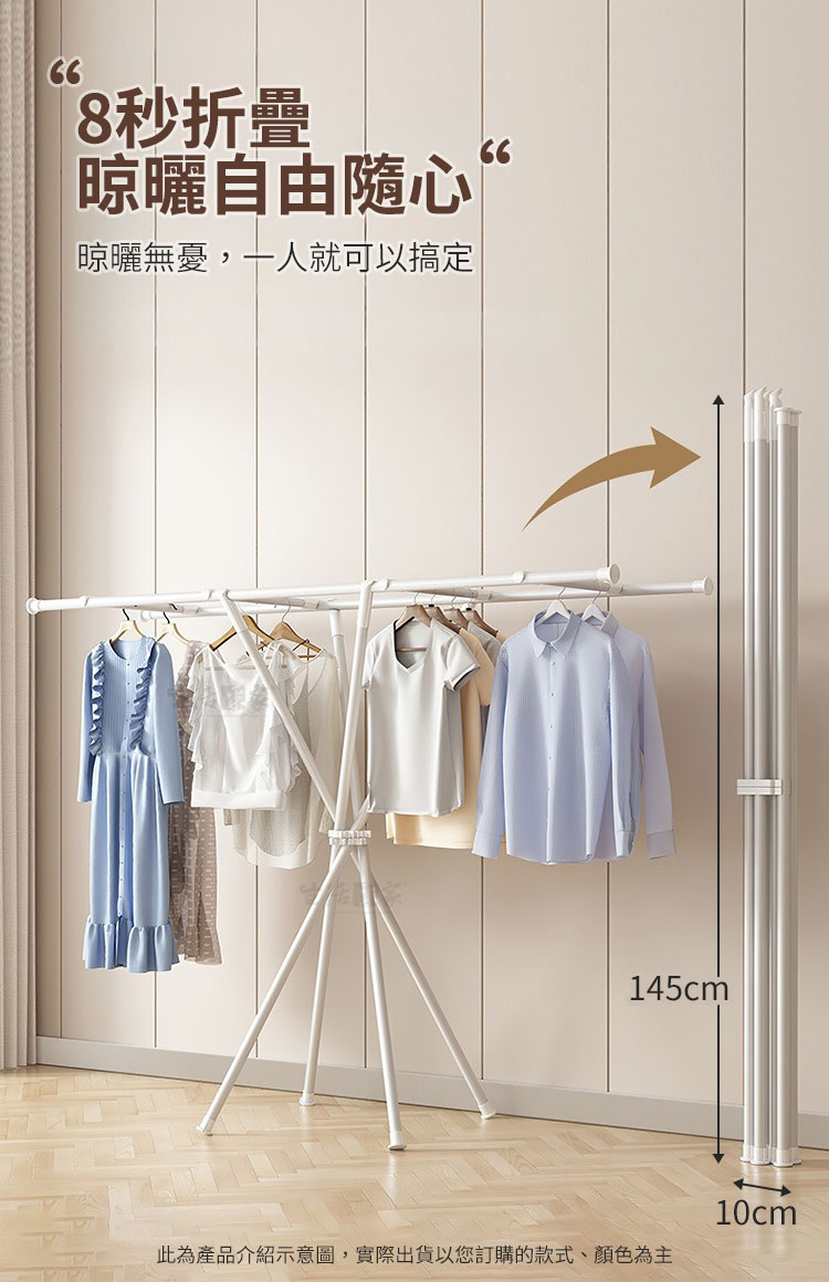 「生活中,也該有這樣的支撐,無聲卻很堅定。」💖。外觀時尚,還具備「8秒折疊」的便捷設計,隨心晾曬,隨時收納!只需輕輕一拉,衣架即可「快速展開」,輕鬆享受陽光的滋潤☀️✨