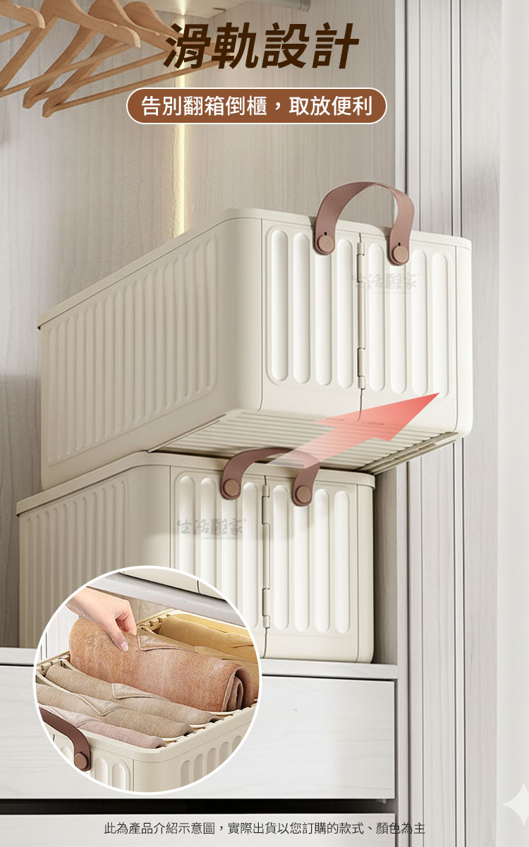 換季、開學必備,季節到了總有一大堆衣物要替換;開學了總有一大堆玩具玩偶要收納~媽媽的難題又來了!東西多沒關係,只要收好放好,家裡一樣可以乾乾淨淨,最怕就是找不到合適的收納好物...今天要來推薦一款讓家務變得更加輕鬆的好好物「可折疊衣物分格整理收納籃」!它不僅實用,還能讓家裡變得更加整潔有序!🧺✨收納籃可以「折疊收納不佔空間」,不使用時可以輕鬆折疊收納,放在角落或細隙處,特別適合小空間的家庭。而且它的「便捷把手」設計,讓你可以輕鬆搬運,不再為搬運重物而煩惱。💪📦收納籃底部有「滑軌設計」,中層可直接抽出來,更好活動,取物更加方便,輕輕一拉就能輕鬆取出衣物,再也不用翻箱倒櫃找東西了。🛏️👕同尺寸還可層層疊加,充份利用垂直空間,充分利用空間,高效收納各種衣物。無論是大件的毛衣還是小件的內衣,都能找到合適的位置,讓家裡每一寸空間都得到充分利用。📏👗有了這個真的讓我的衣物變得清楚明瞭,收納再也不是難題,趕快入手吧!你一定會愛上它!🏡💖#收納籃 #可折疊 #衣物整理 #滑軌設計 #高效收納 #居家好物注意事項:1.請勿重摔或高處掉落,以免商品受損。2.請勿接近高溫或勿近火源處,以免商品受損。3.商品情境圖片僅供參考,實際出貨不含週邊道具及配件。