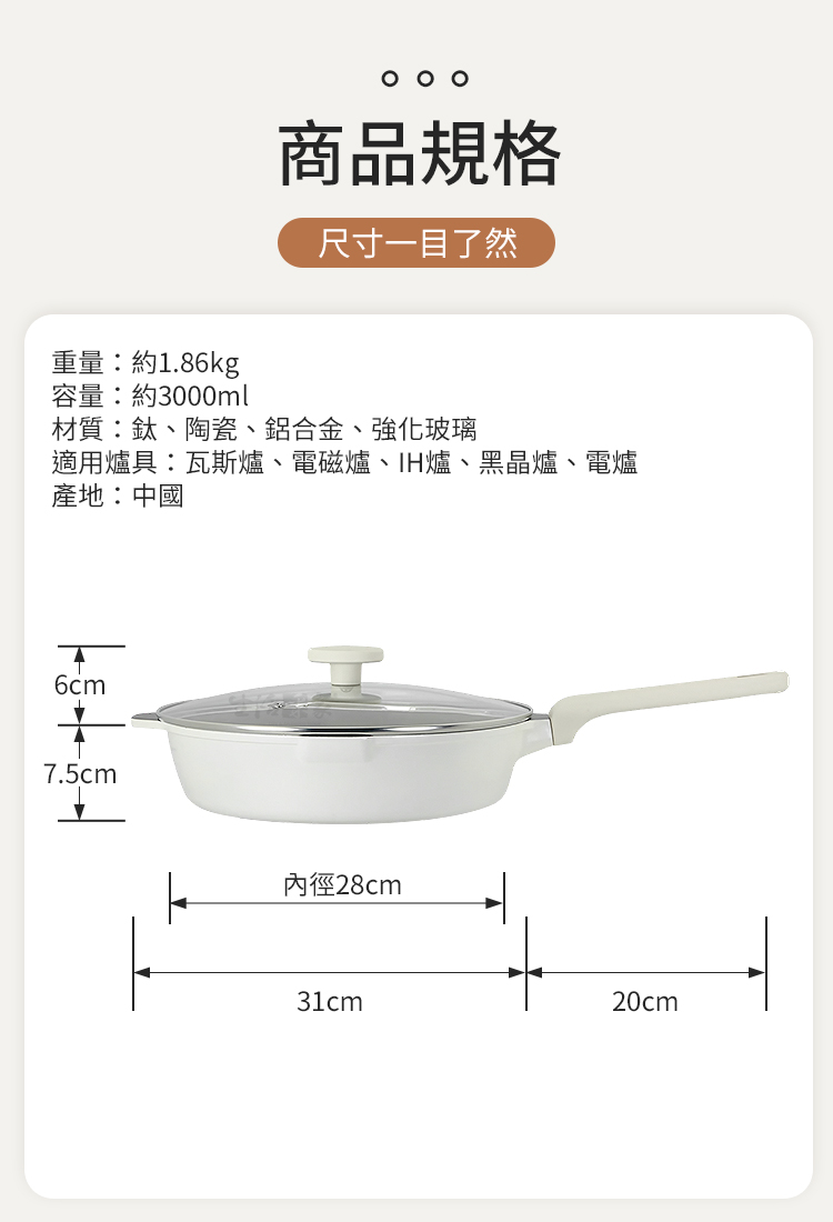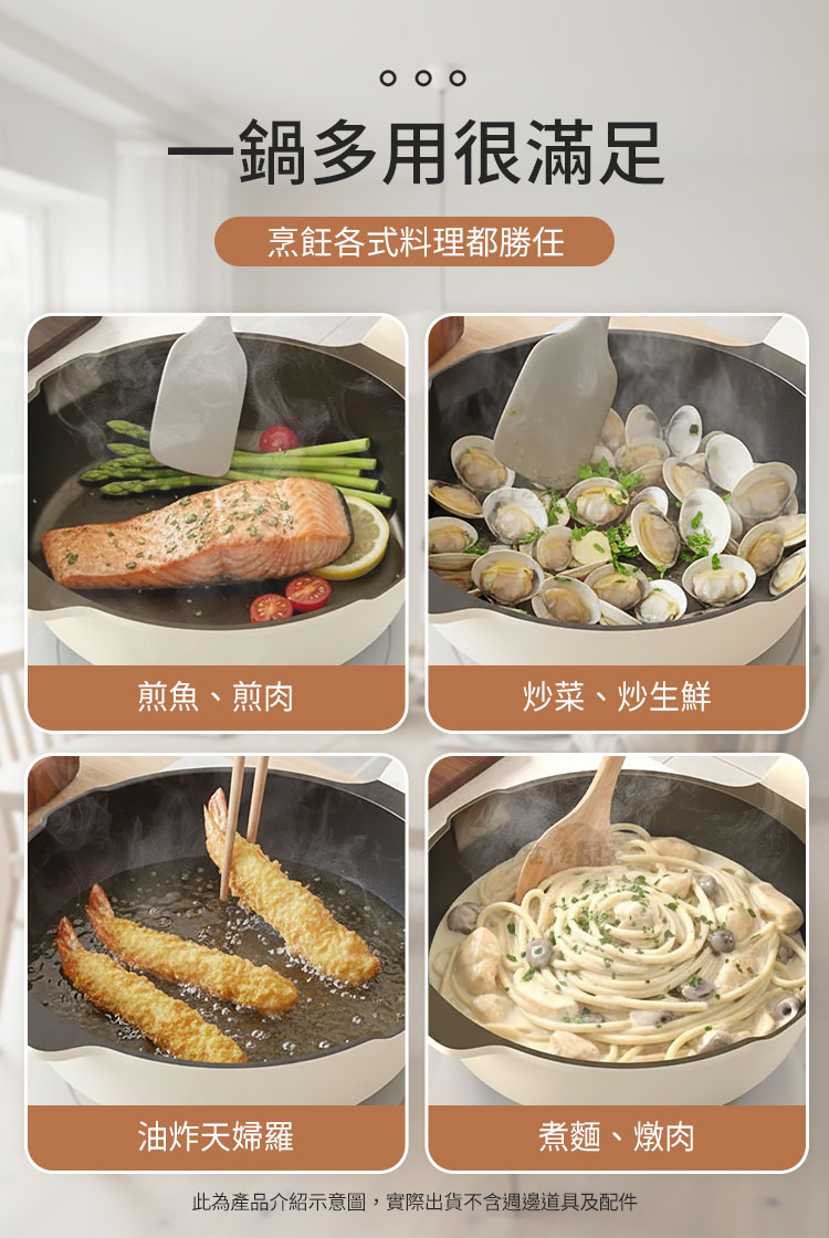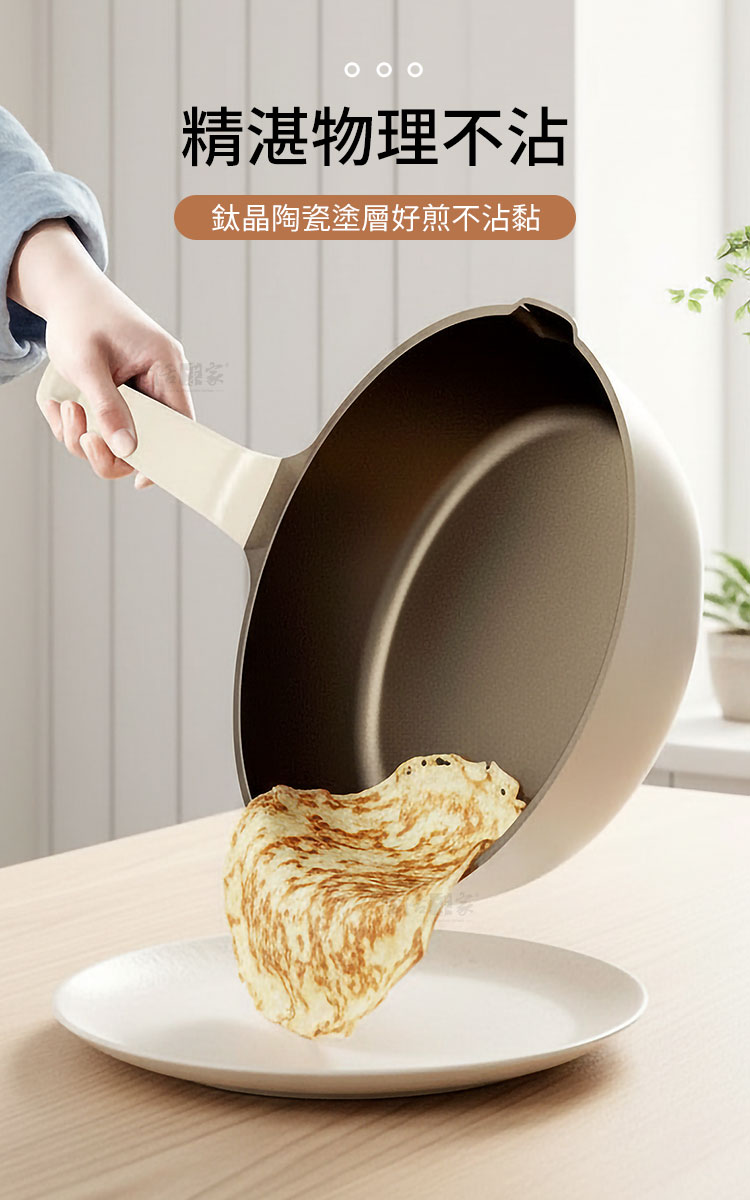 👩🍳告別廚房戰場,從選對一把好鍋開始是否也曾為了沾鍋燒焦而苦惱?或是鍋具太重提不動、薄底容易變形導致受熱不均?身為精緻生活的追求者,您值得擁有一把能解決所有痛點的夢幻鍋具。生活采家「鈦陶瓷不沾單把平底鍋」,將航太級「鈦」金屬與陶瓷 塗層完美融合,不僅是鍋,更是您廚房裡的科技與溫度。✨✅ 五層複合鈦結構:底層導磁、中二層導熱、上二層鈦晶陶鎔覆層,不僅不沾而且導熱均勻,更具備抗酸鹼、耐腐蝕的特性。✅ 7.5cm 加深鍋型 🍲:比一般平底鍋更深!煎魚、炒菜不易噴濺至台面,甚至燉煮義大利麵、油炸天婦羅都能一鍋搞定。✅ 導磁厚底設計 ⚡:加厚底座抗熱不變形,油品能均勻鋪開不凸底,導熱迅速均勻,且能適用各種爐具,大幅縮短烹飪時間,鎖住食材鮮甜肉汁。✅ 羽量級單手操作:針對手感優化的握柄好拿好掛,貼心設計的導流嘴,湯類料理也能輕鬆傾倒,優雅不費力,但為了安全起見,移動過程中還是建議雙手端鍋。✅極簡保養哲學 🧽:物理性不沾,料理完後只需使用清潔劑稍加清洗,汙垢瞬間消失,省下洗鍋的體力與時間。👉 使用後,你會發現...以前炒菜總是要倒很多油才不沾?現在只需要少許油,甚至食物天然油脂就能滑順翻炒!以前洗鍋要刷半天,現在沖水即淨,讓您更有時間陪伴家人,享受每一頓溫暖的餐點。❤️如果你正在找一口👉 不沾、好用、不挑料理👉 不凸底、不厚重、不難洗👉 每天都願意拿出來用的鍋這口 28cm 鈦陶瓷不沾單把平底鍋,就是你的最佳選擇。#生活采家 #不沾鍋推薦 #健康料理 #鈦陶瓷鍋 #廚房神器📣 FAQ (常見問答)Q1:這款鈦陶瓷鍋可以用在電磁爐(IH爐)上嗎?A1:可以的。鍋底具備導磁複層,不僅適用於瓦斯爐,IH爐、電磁爐、黑晶爐等市售爐具皆可通用。Q2:鈦陶瓷塗層與一般鐵氟龍塗層有什麼區別?A2:鈦陶瓷採用物理性不沾原理,具備更高硬度與耐溫性,不含 PFOA 等有害物質,且使用壽命更長,安全無虞。Q3:這款鍋子真的可以單手拿嗎?A3:是的。本產品針對使用者習慣進行輕量化設計,即使女性使用者或長輩也能輕鬆單手端鍋,但為了安全起見,移動過程中建議雙手端鍋。Q4:為什麼建議選擇 28cm 這個尺寸?A4:28cm 是家庭料理的黃金尺寸,搭配 7.5cm 深型設計,容量足以應對 2-4 人份料理,實用性最高。Q5:清潔時可以使用鋼刷嗎?A5:雖然鈦陶瓷硬度高,但為延長不沾壽命,建議使用海綿或軟質洗碗布。因其不沾效果,通常不需用力刷洗即可乾淨。注意事項:1.請勿在無食材狀況下大火空燒,以免損壞不沾塗層。2.為避免刮傷鍋內塗層,料理時建議使用木鏟或矽膠鏟。3.烹飪後請稍待鍋體降溫後再沖冷水,避免熱脹冷縮導致塗層剝落。4.本鍋導熱極佳,建議使用中火、小火即可達到最佳導熱效果。5.不建議洗碗機,強效洗劑可能影響塗層壽命,建議手洗為主。6.收到商品後,手把需自行組裝,請確認組裝無虞後再行使用。